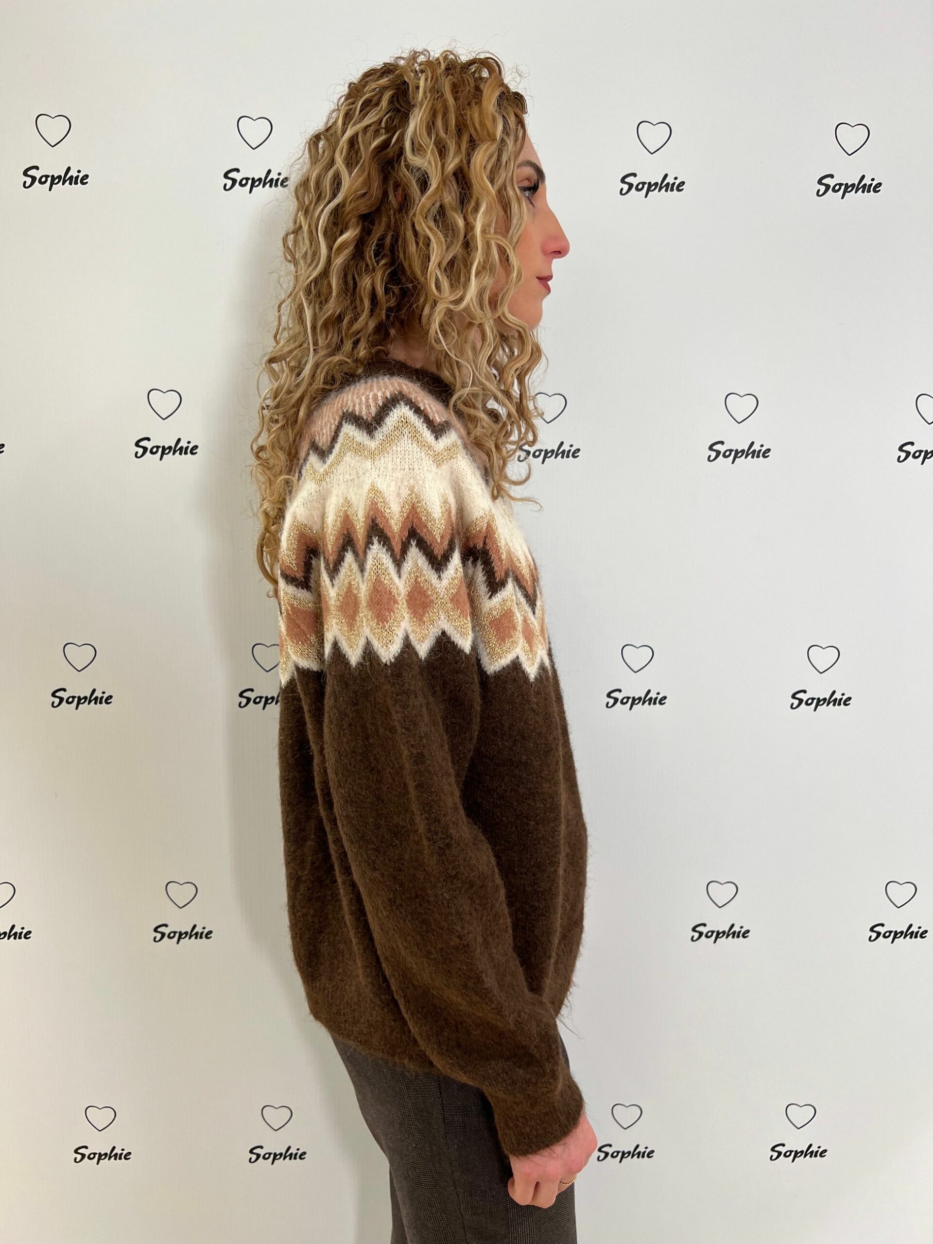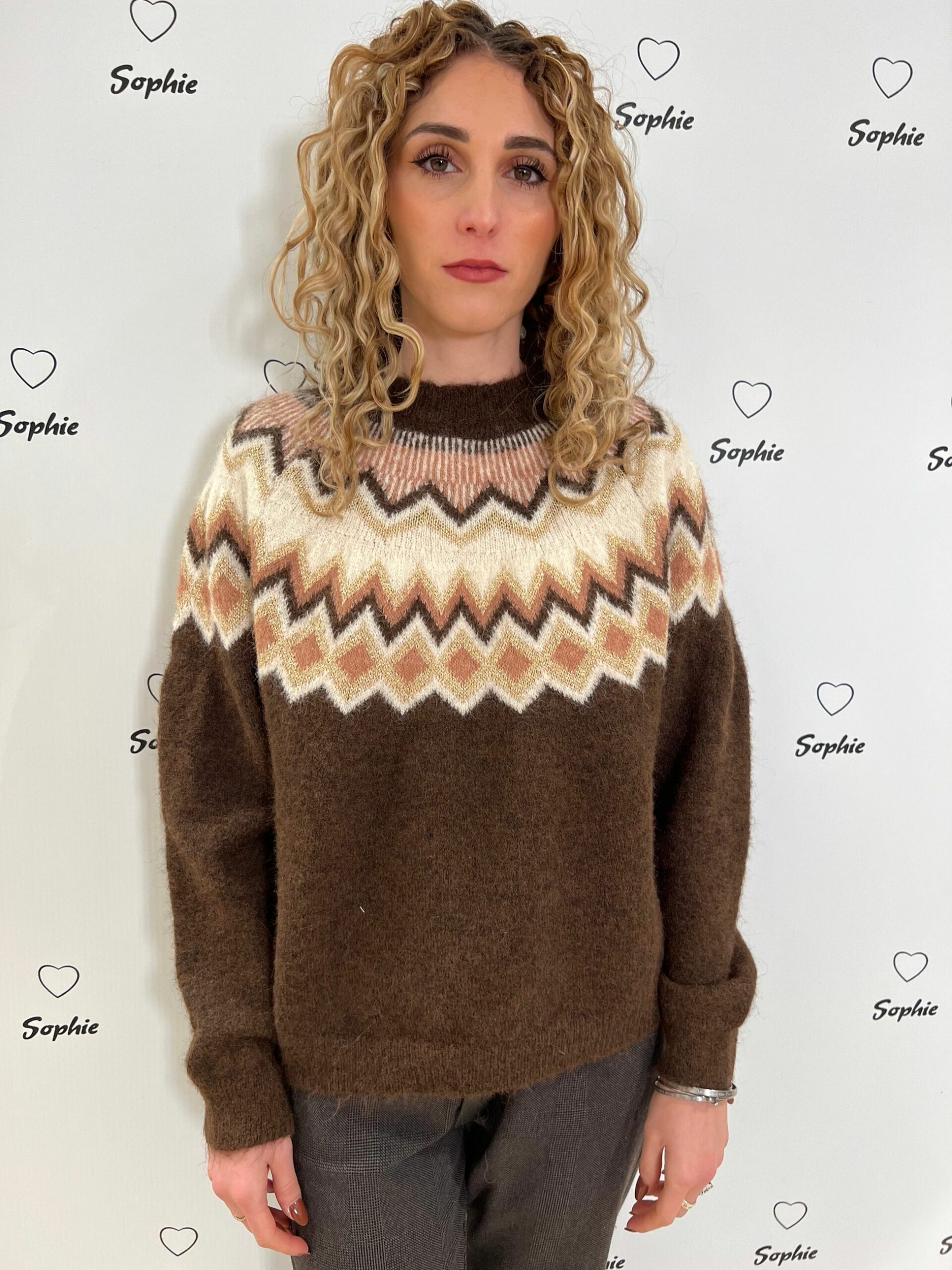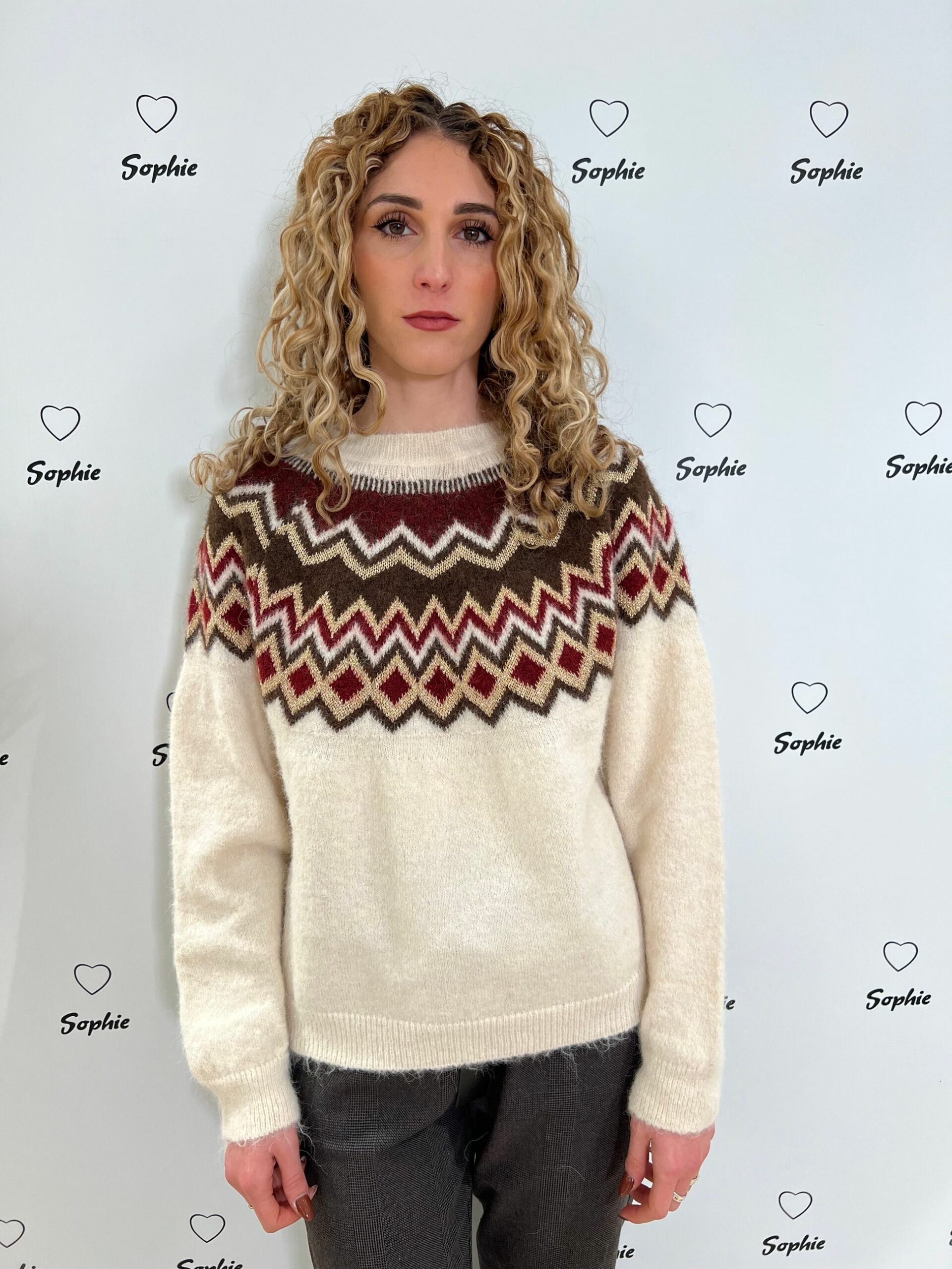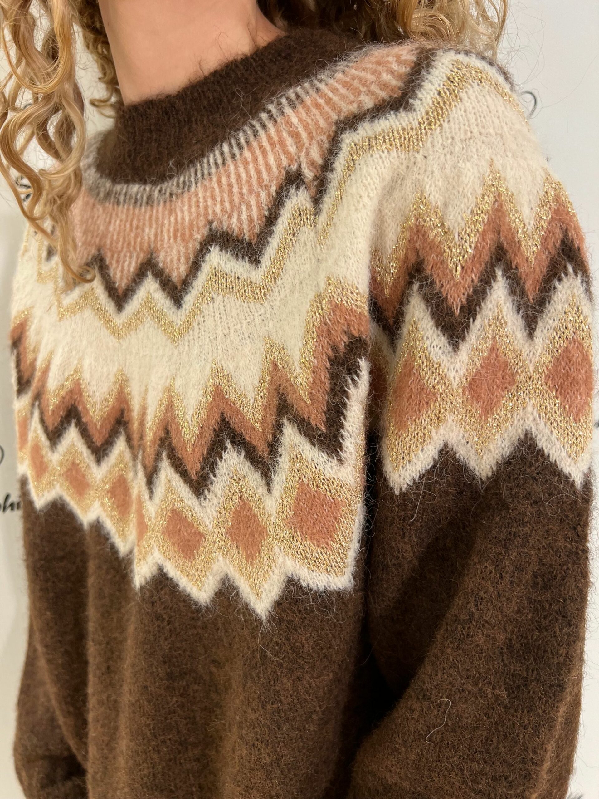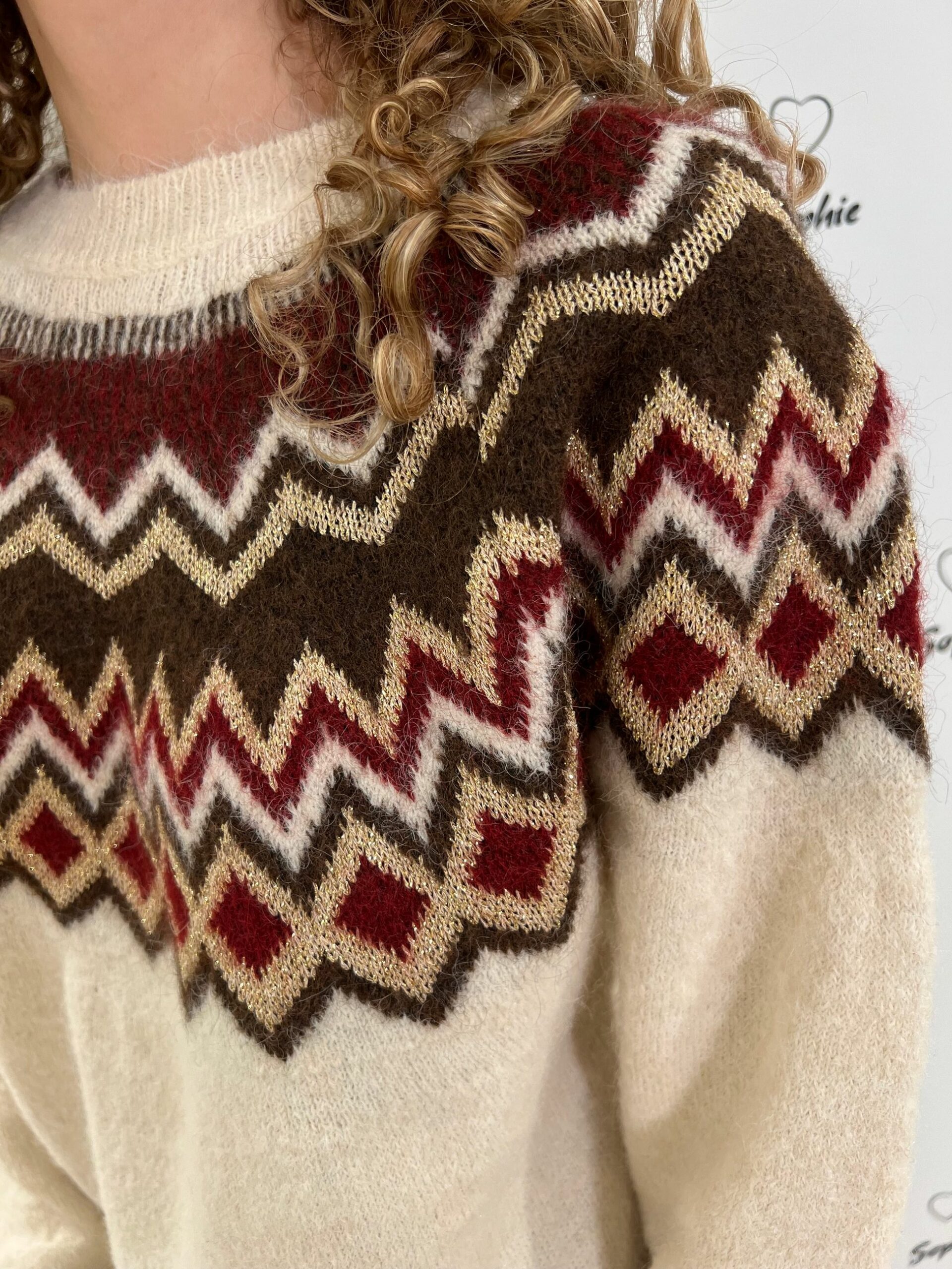 MAGLIA GIROCOLLO CON DISEGNO TIPO NORDICO E LUREX