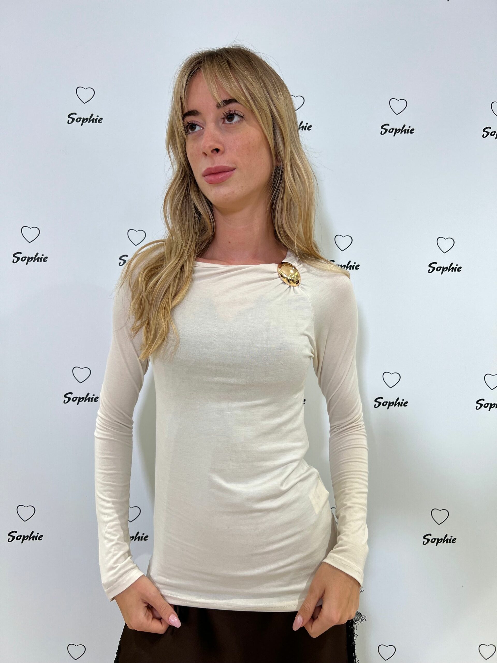 MAGLIA IN VISCOSA LEGGERA CON ELEMENTO COLOR ORO SULLO SCOLLO