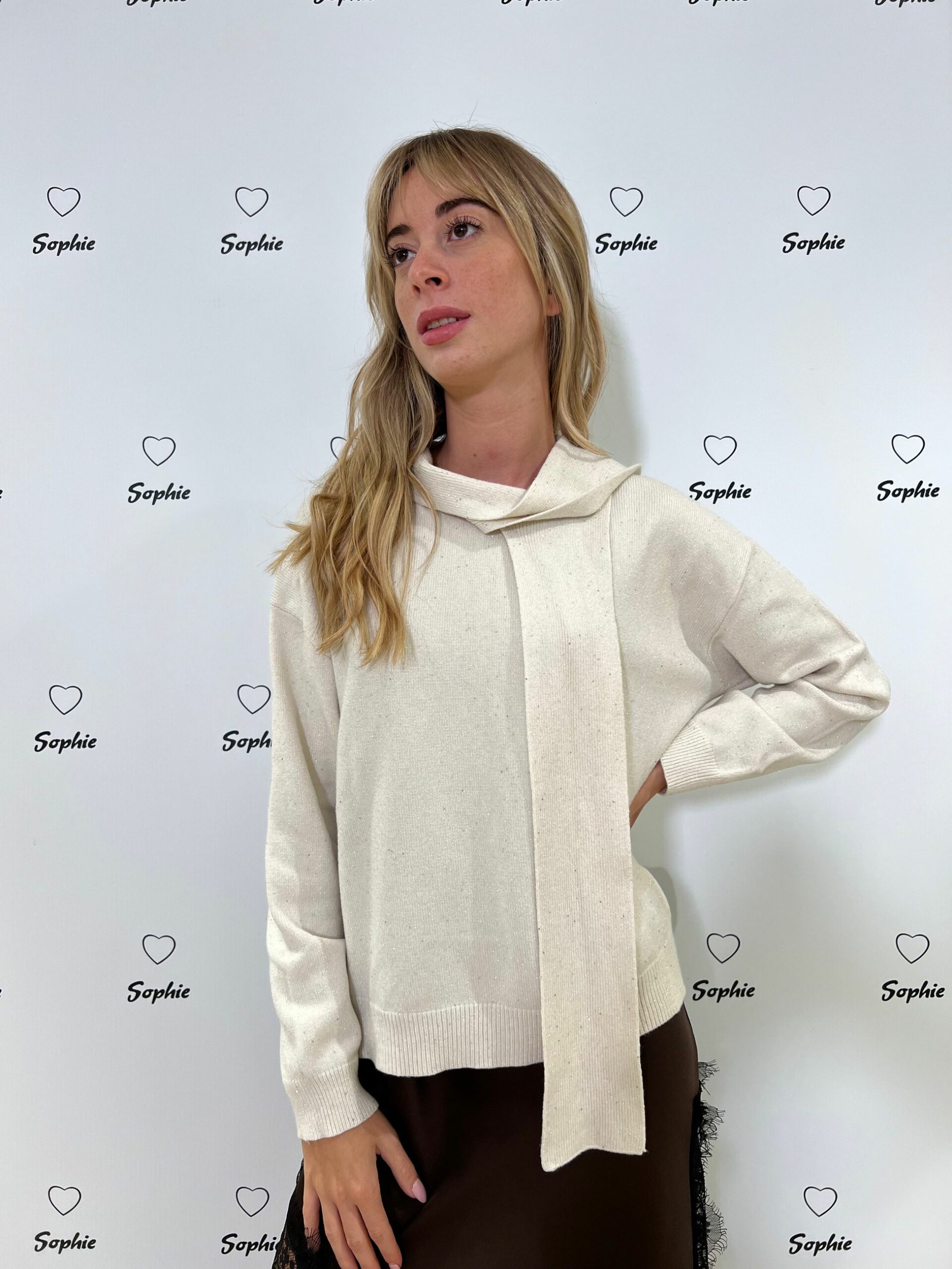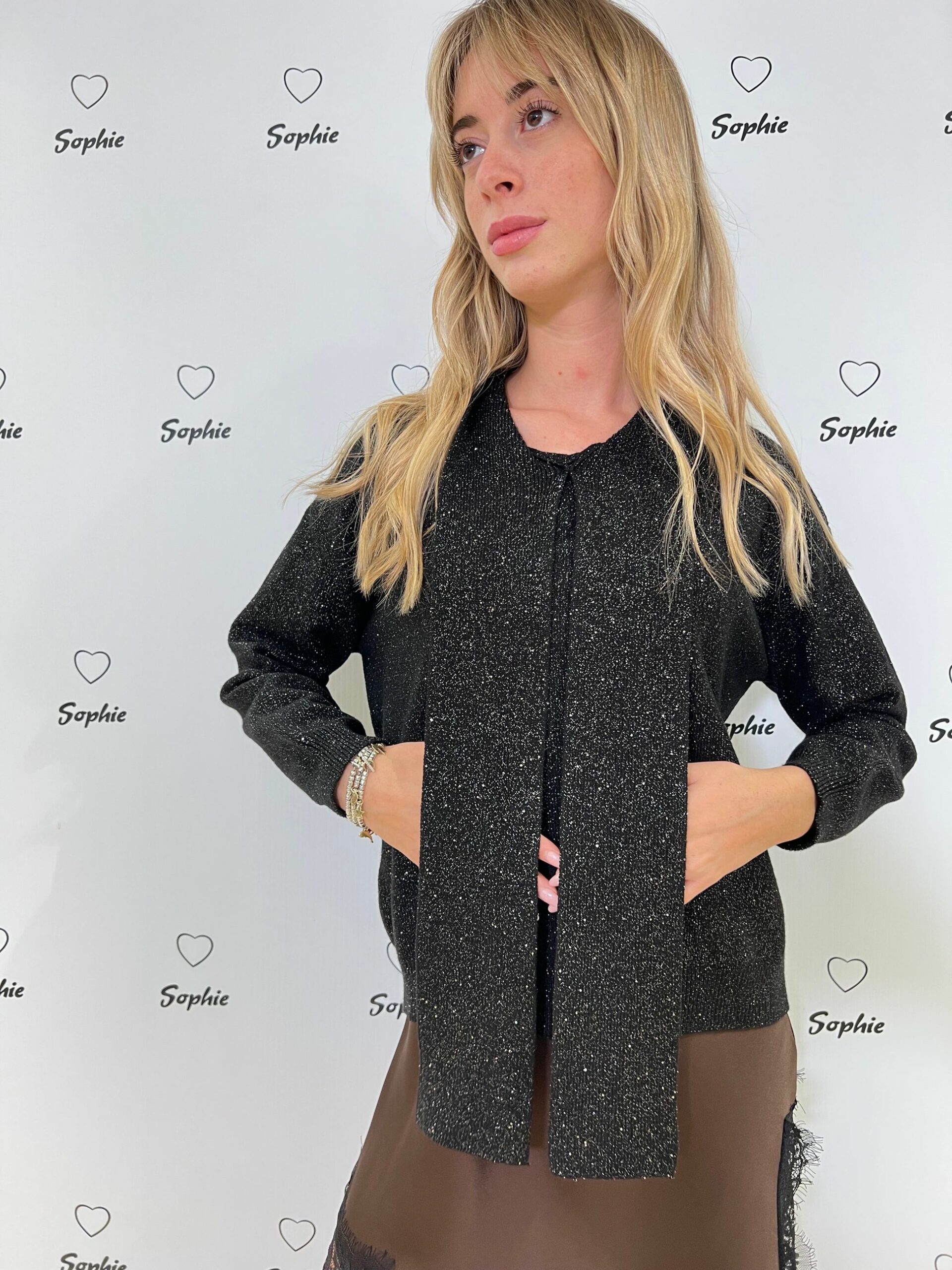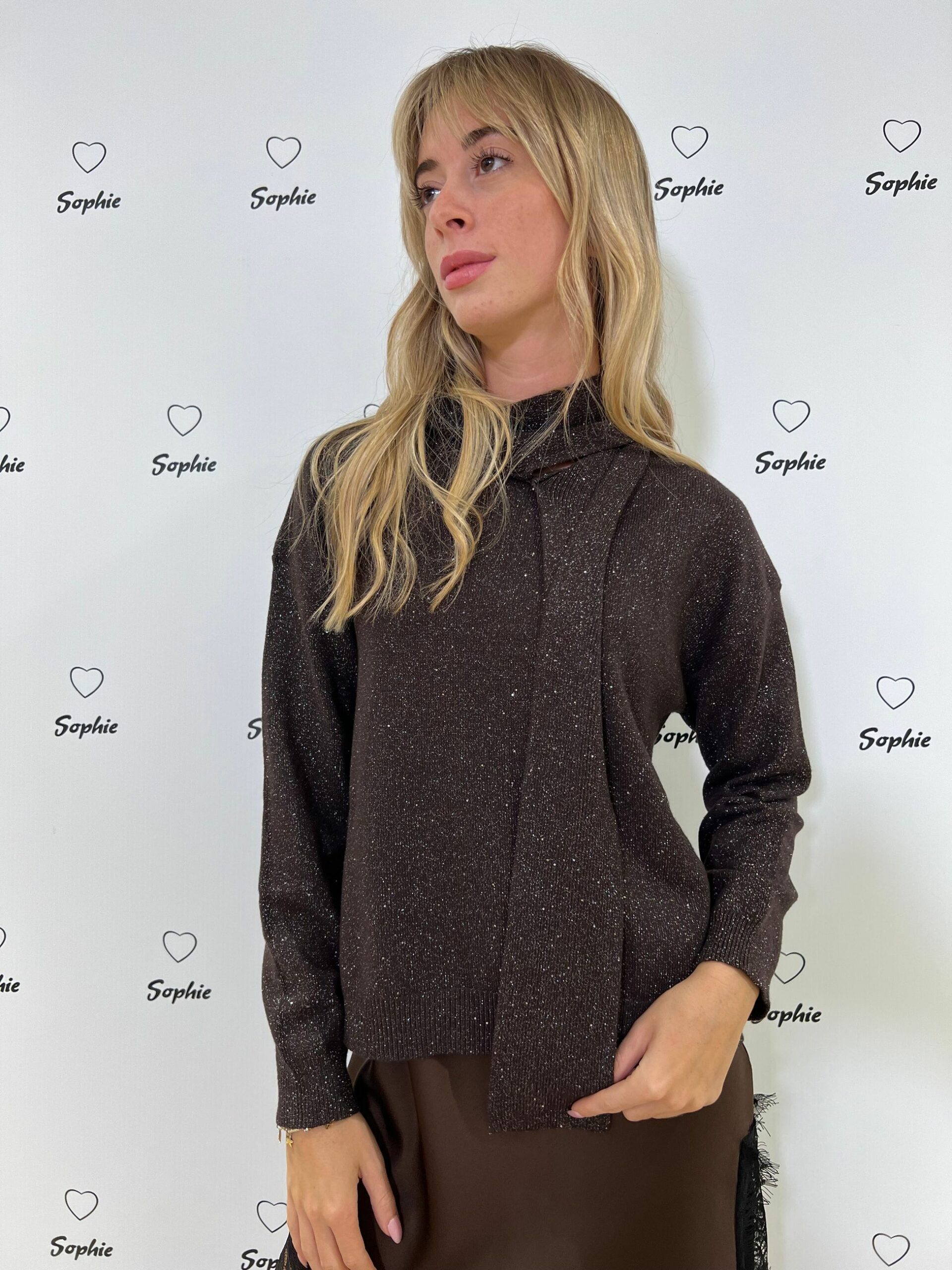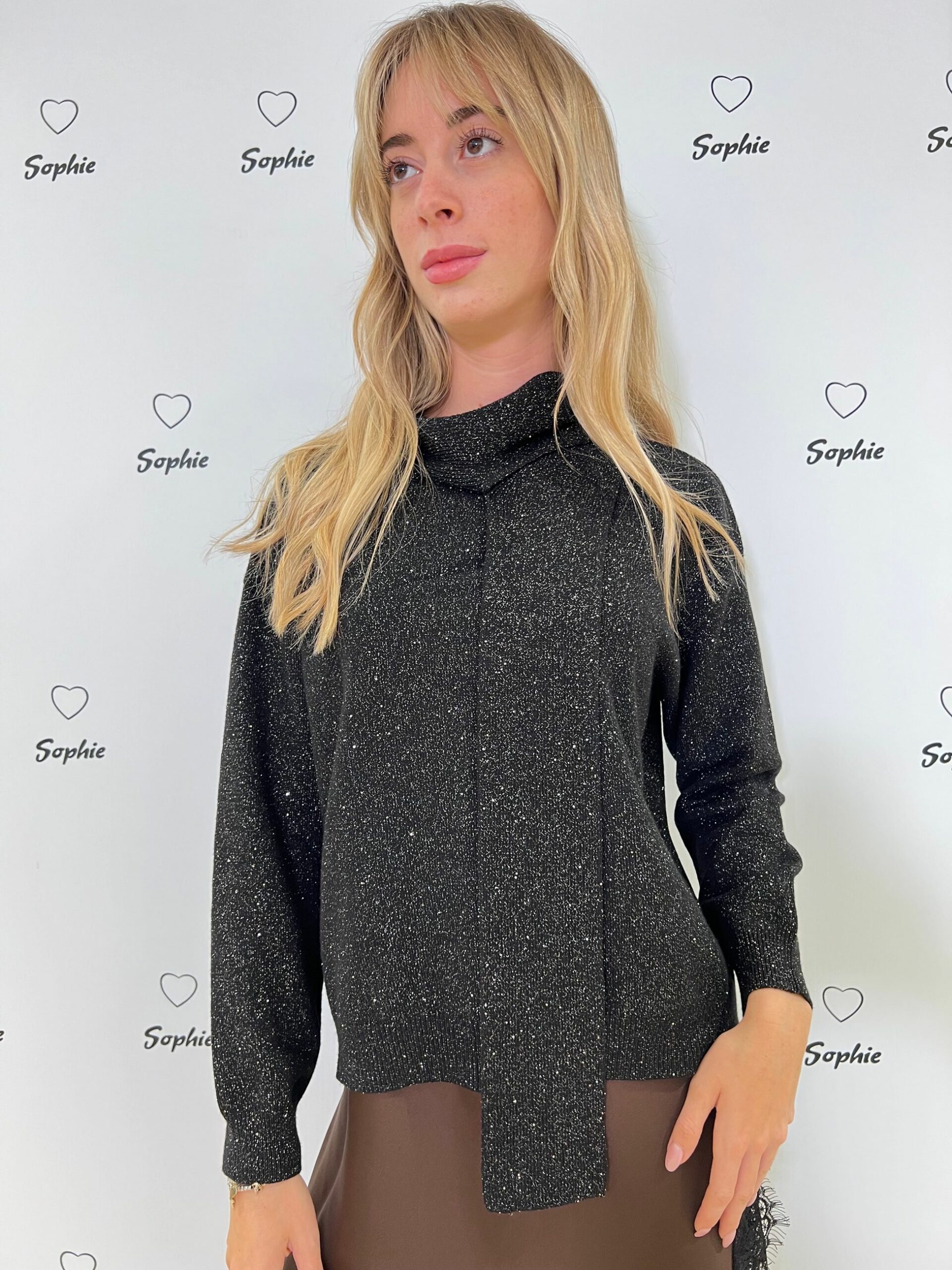 MAGLIA CORTA IN VISCOSA CON LUREX E MOTIVO A SCIARPINA CHE PARTE DAL COLLO
