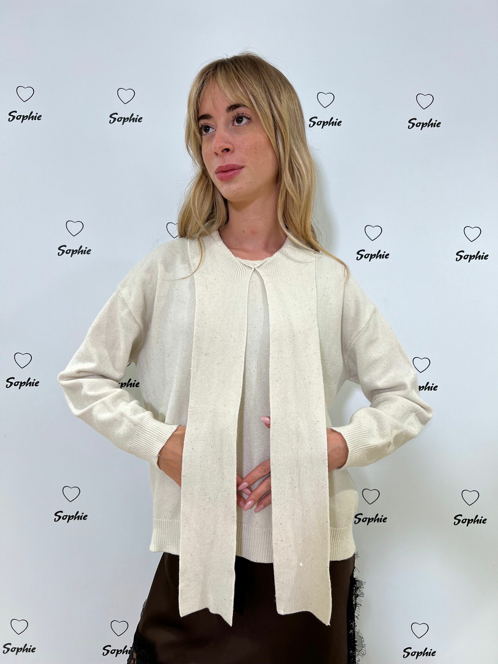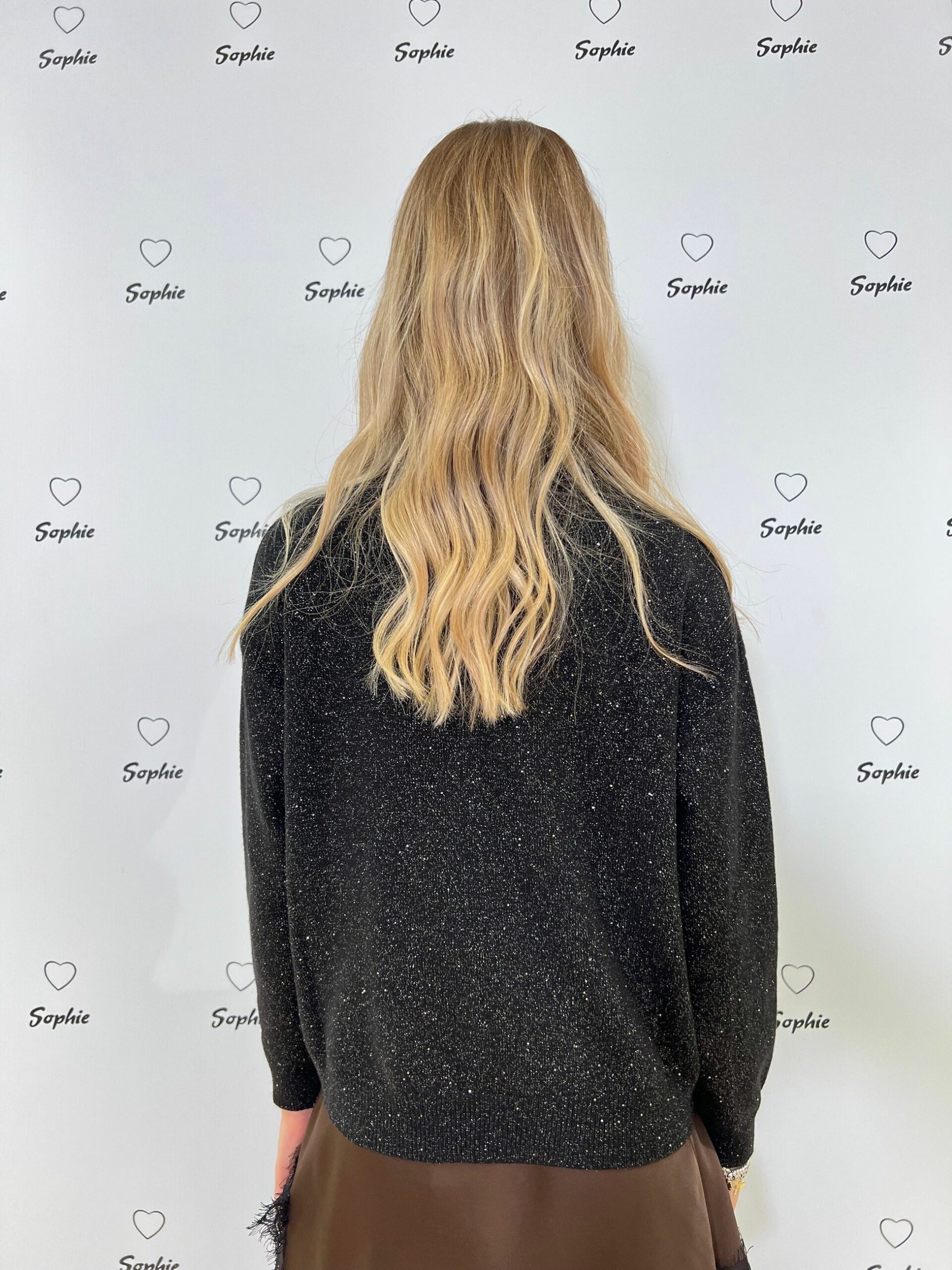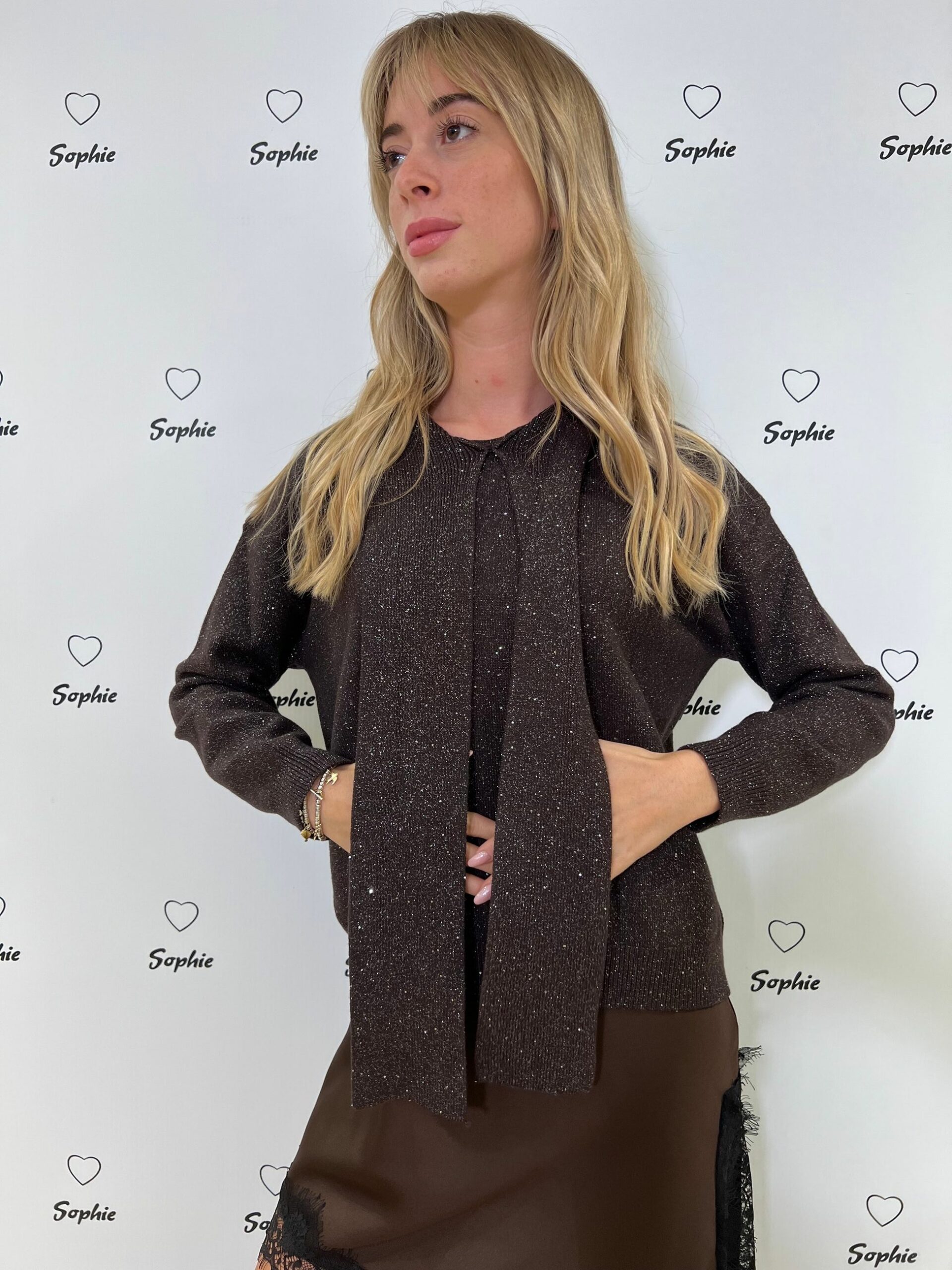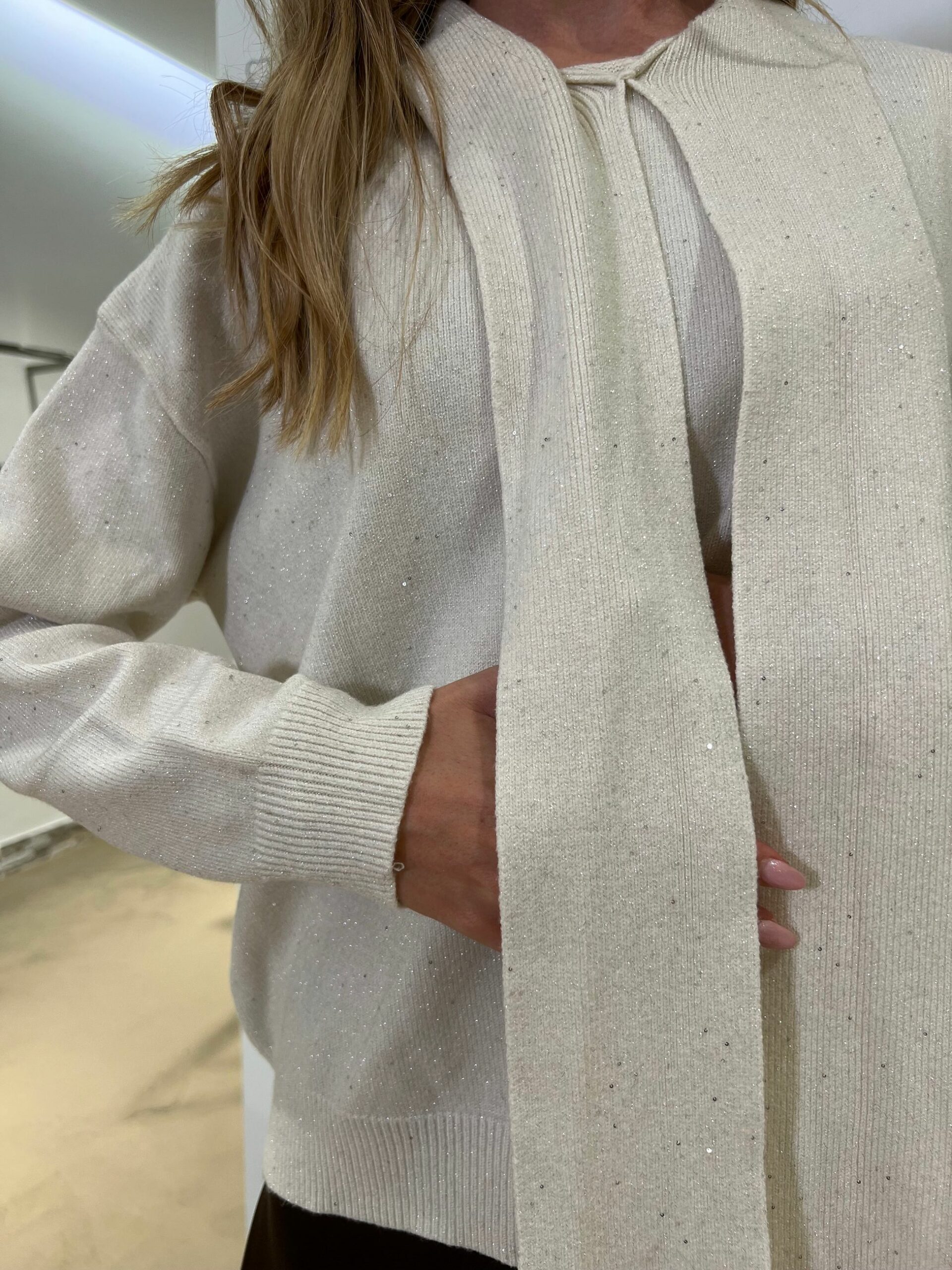 MAGLIA CORTA IN VISCOSA CON LUREX E MOTIVO A SCIARPINA CHE PARTE DAL COLLO