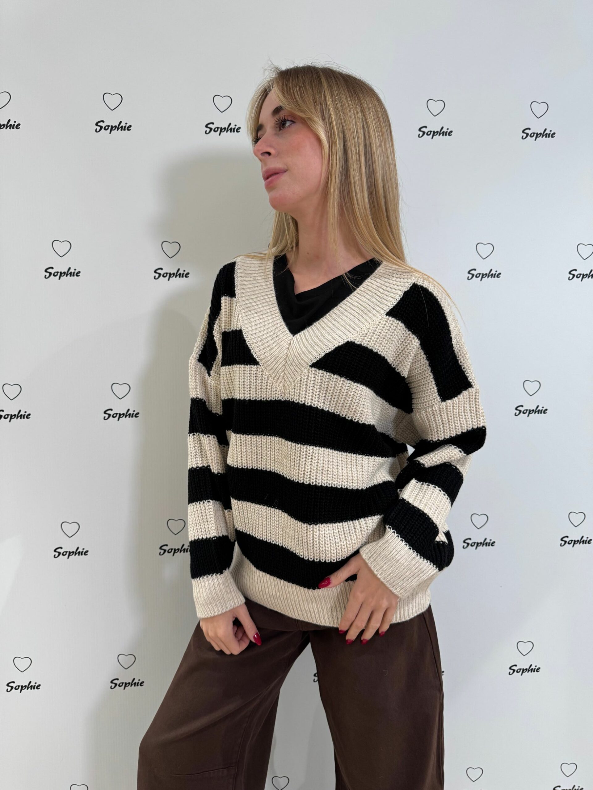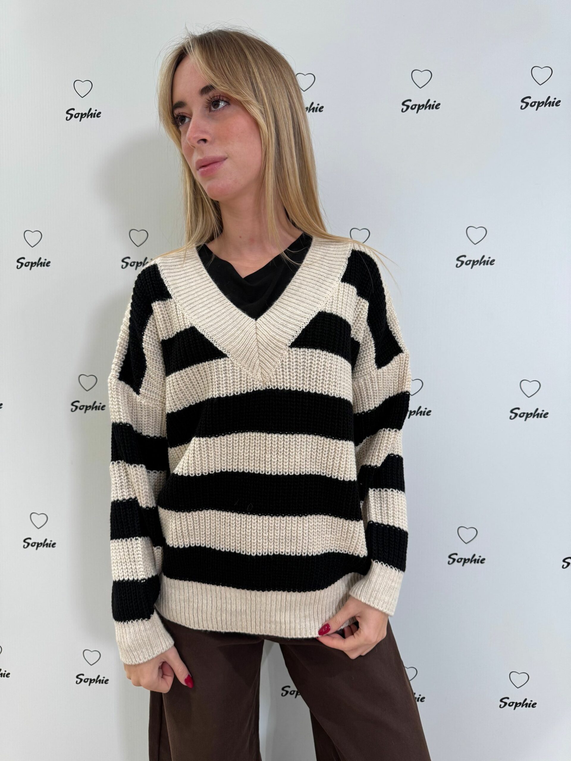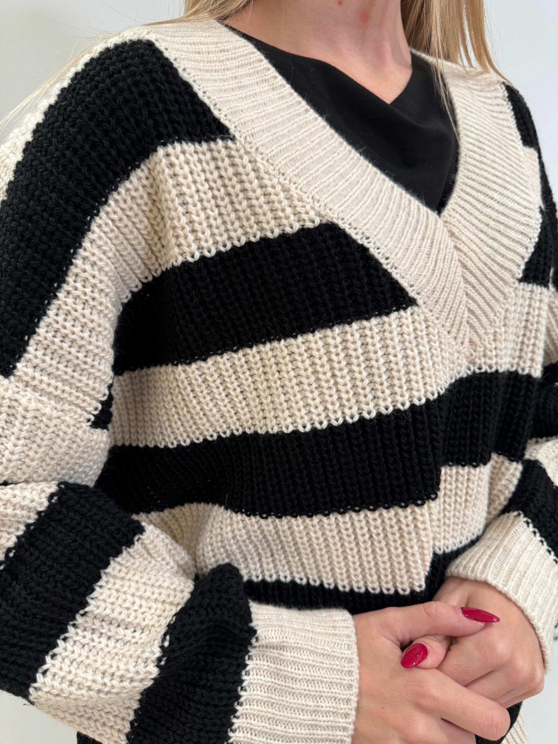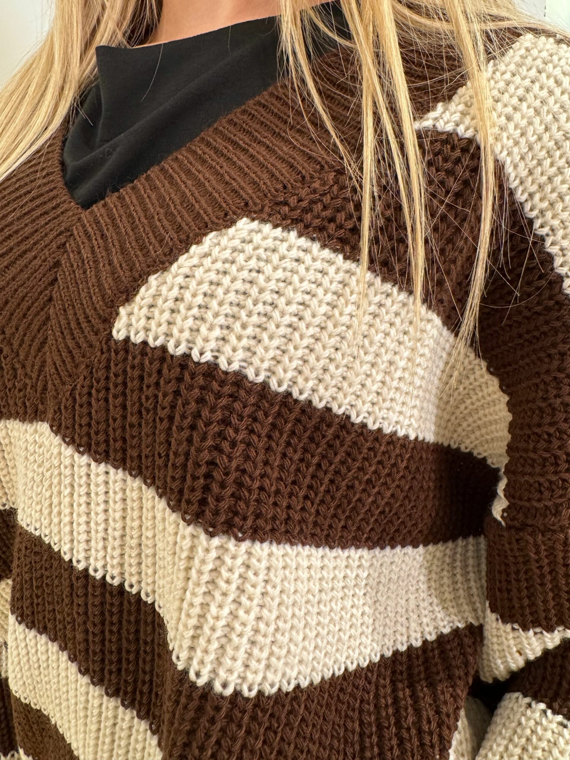 MAGLIA SCOLLO A V A RIGHE LARGHE
