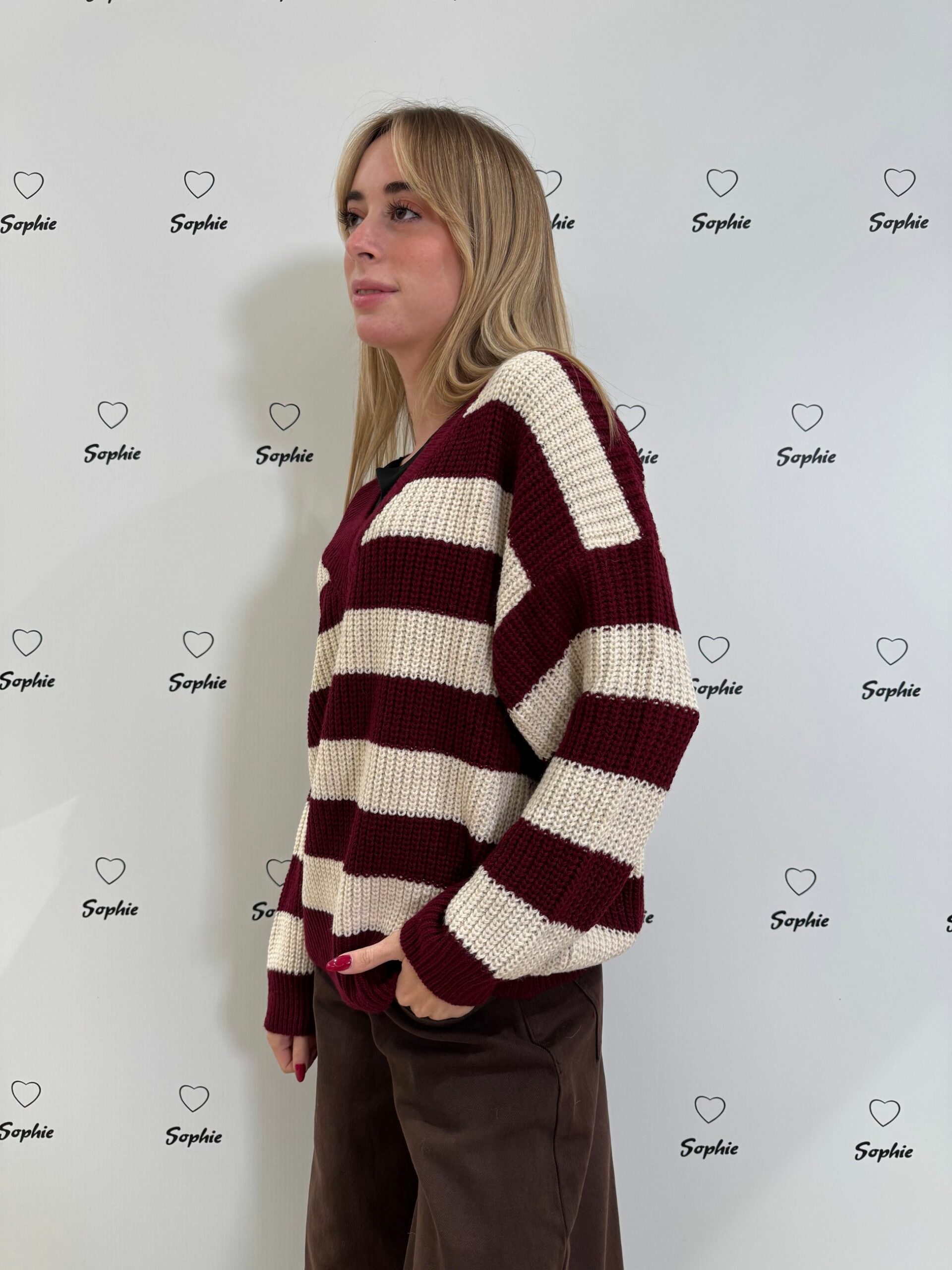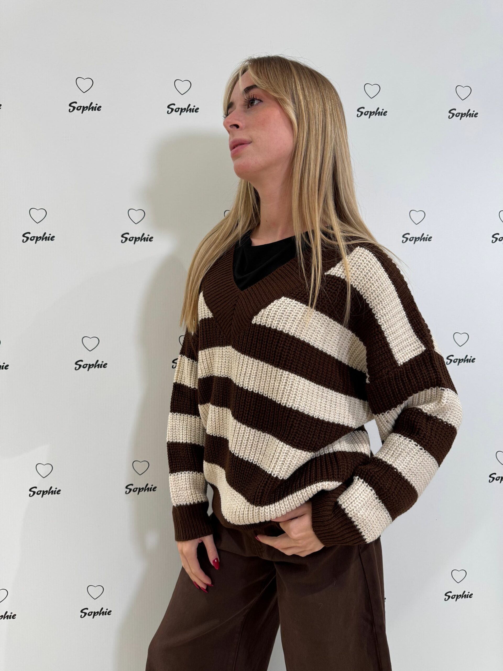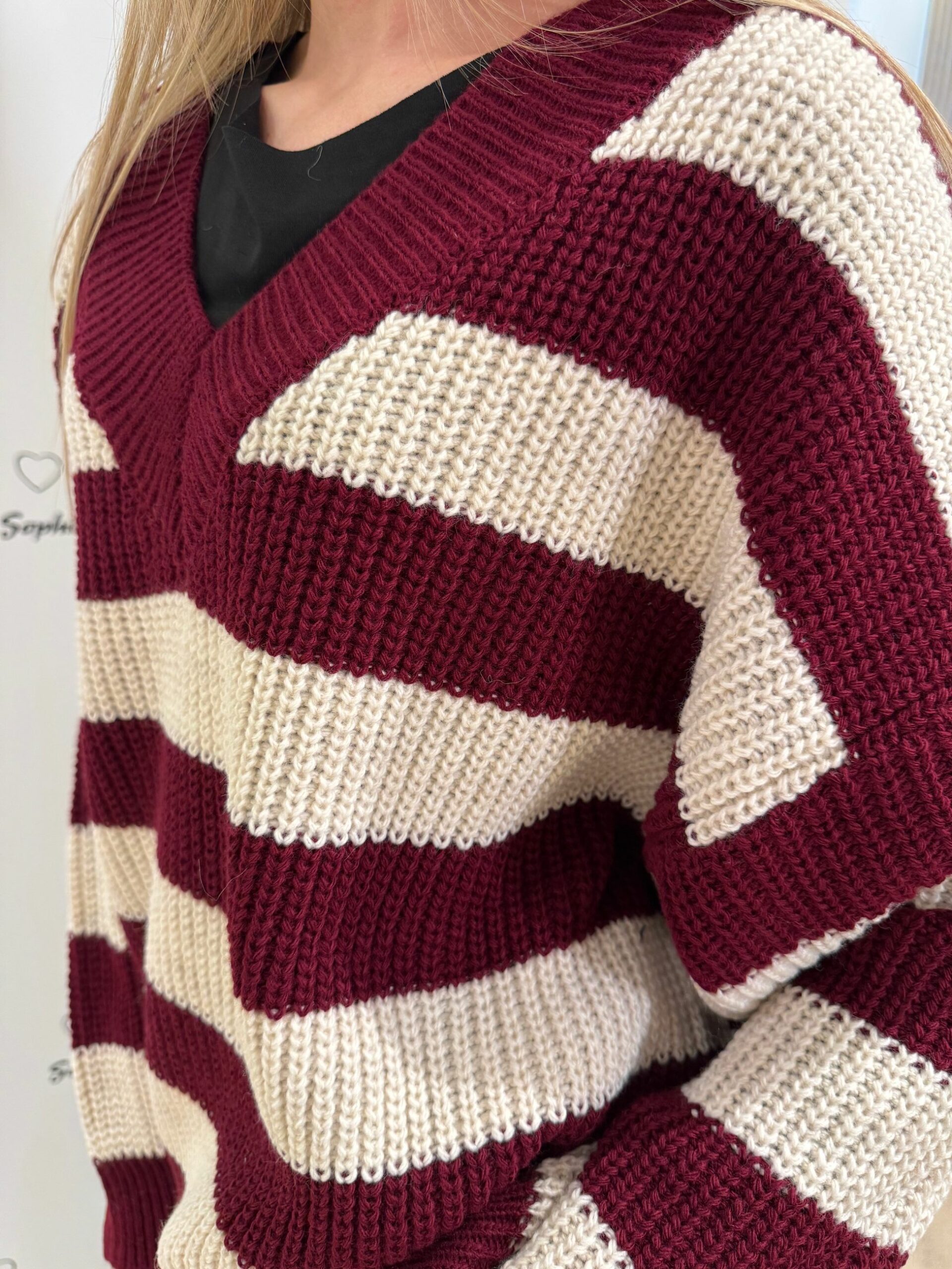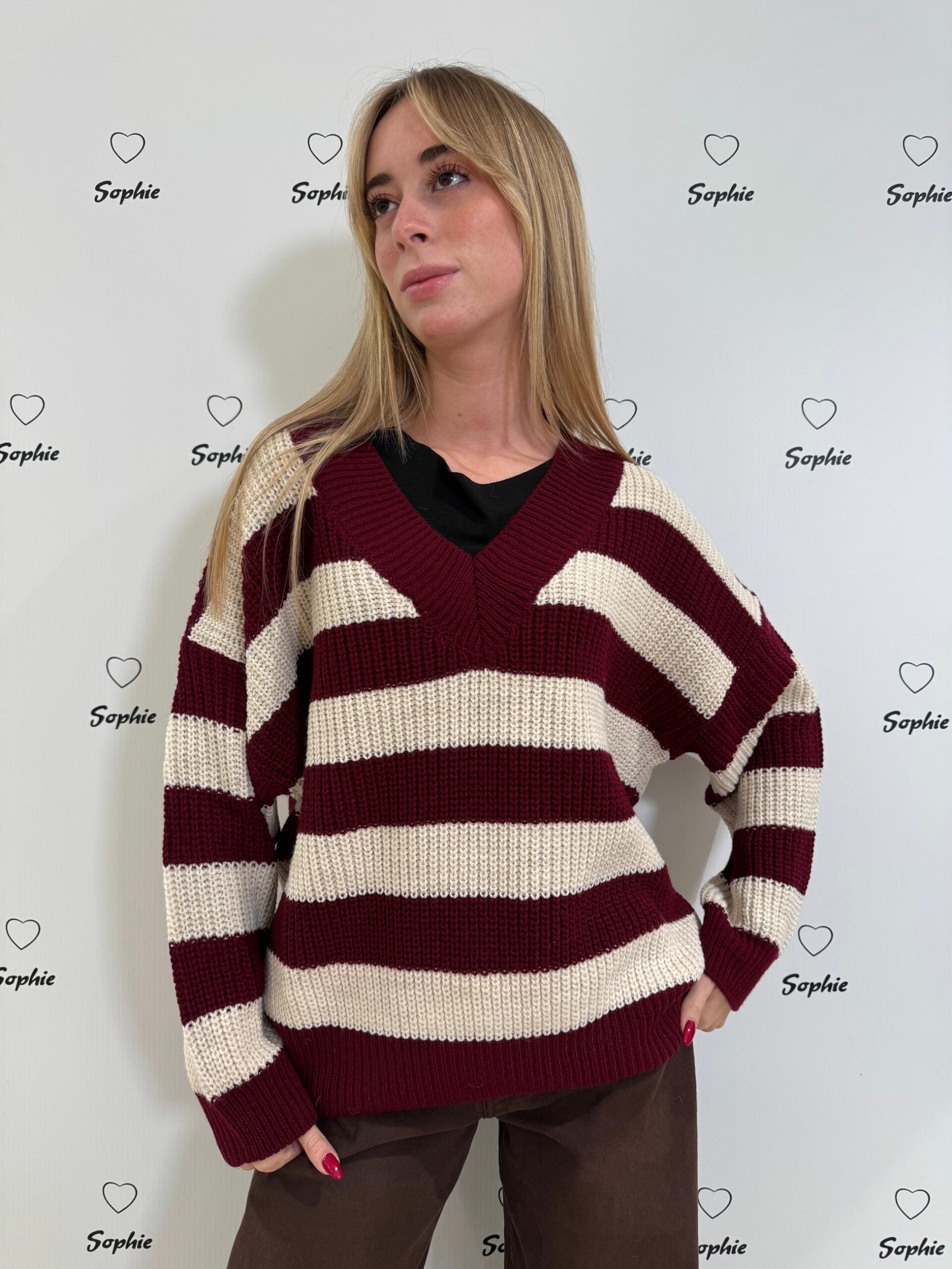 MAGLIA SCOLLO A V A RIGHE LARGHE
