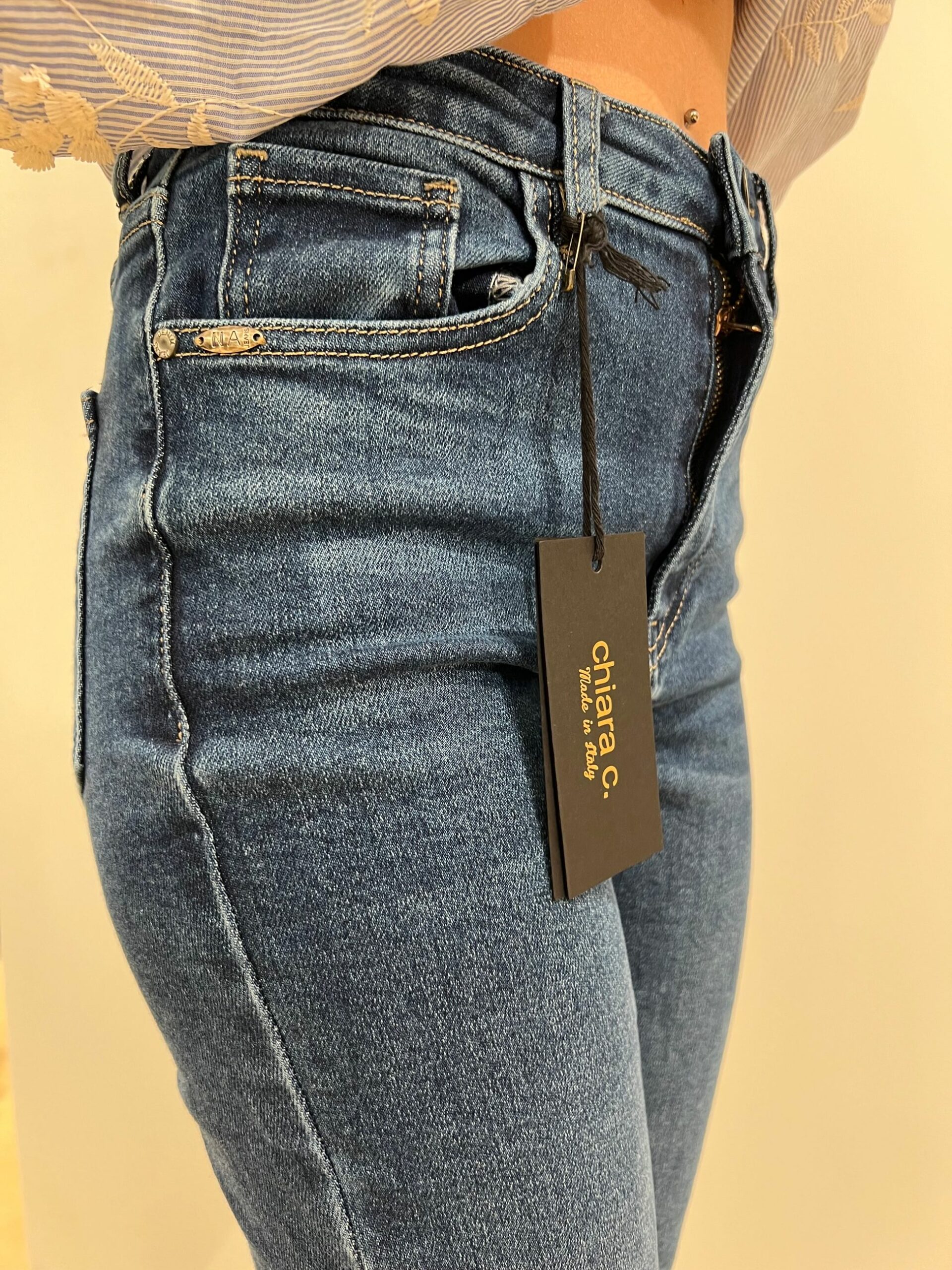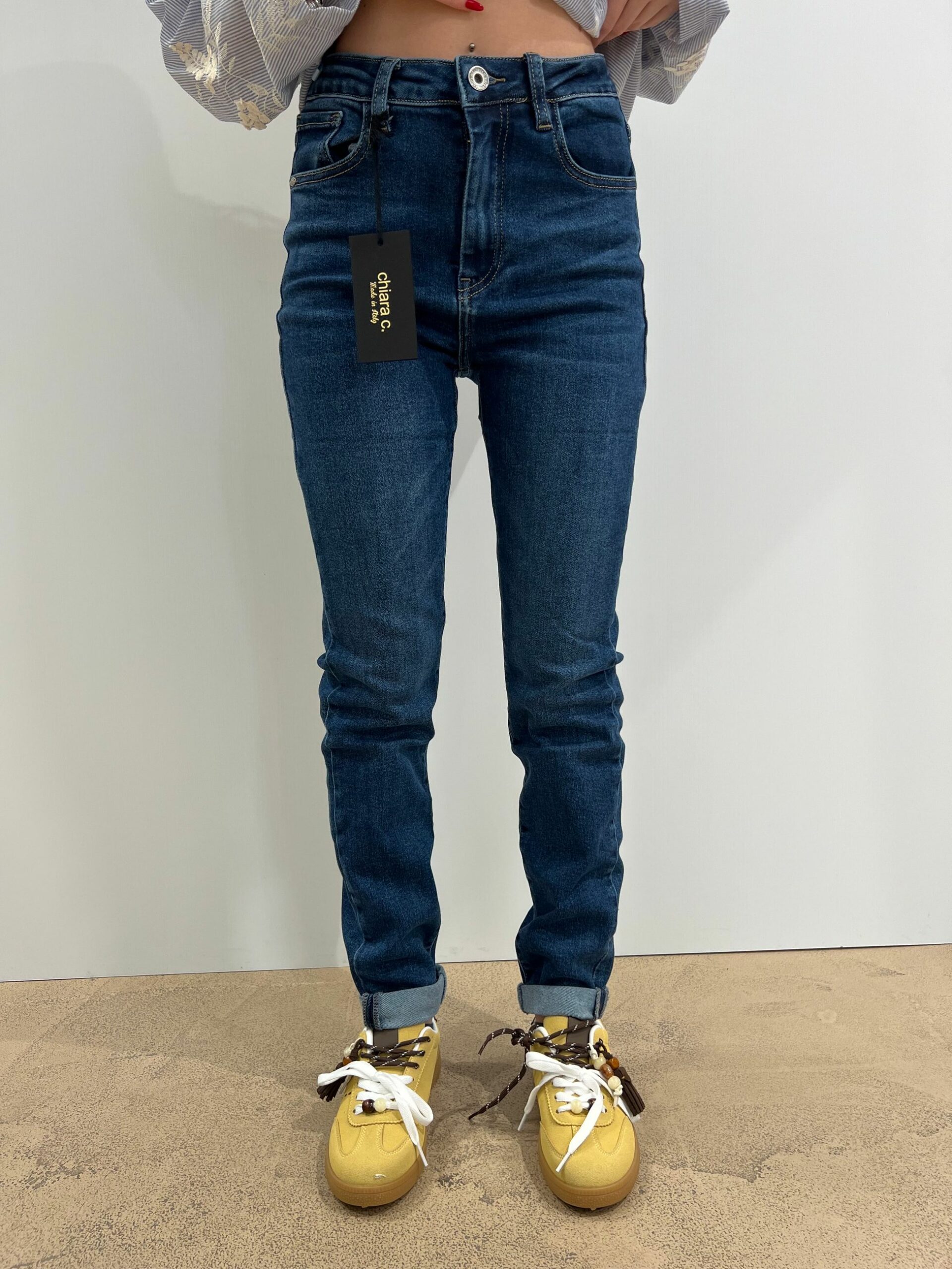 PANTALONE IN JEANS ELASTICIZZATO VITA ALTA GAMBA STRETTA