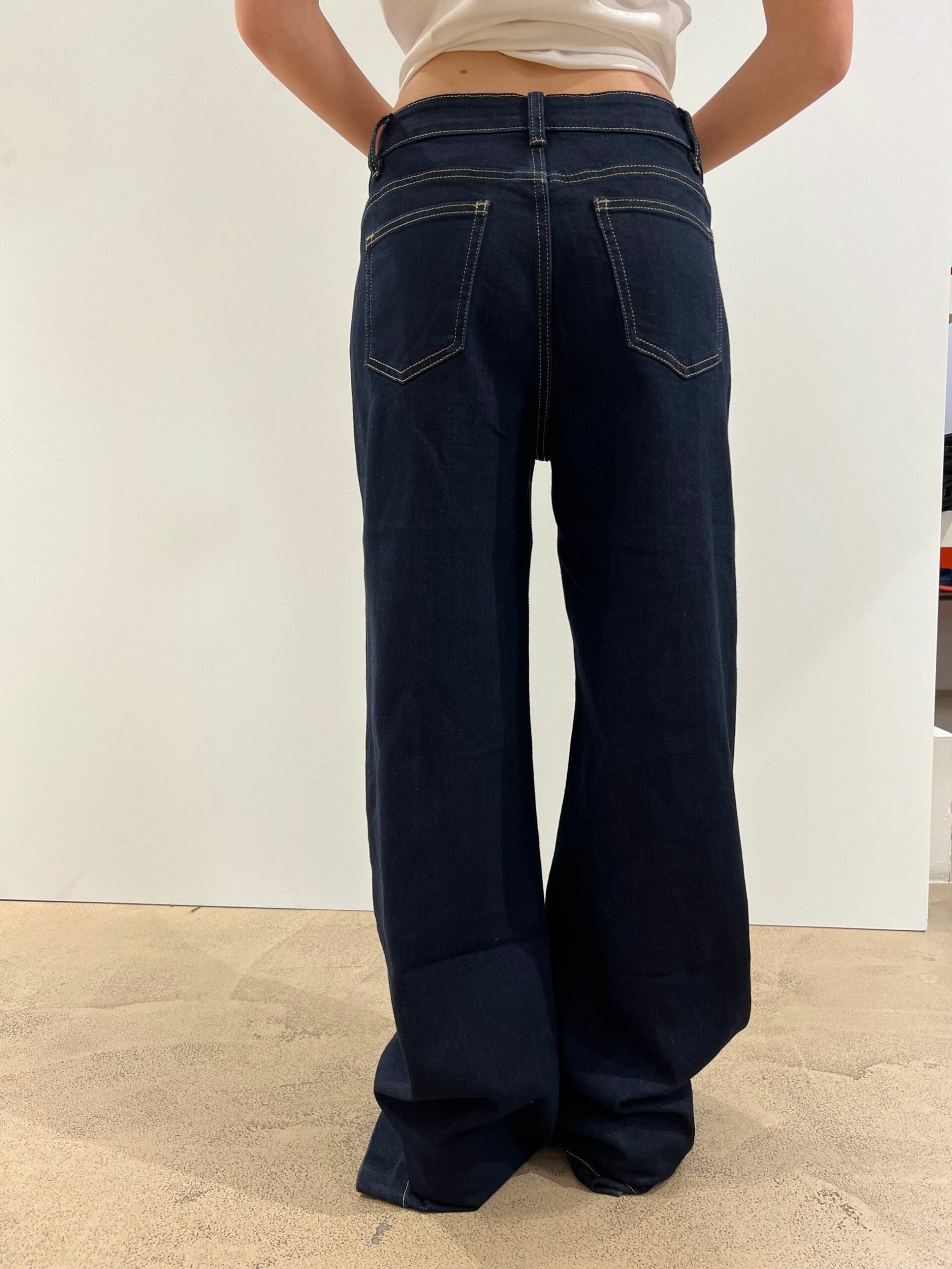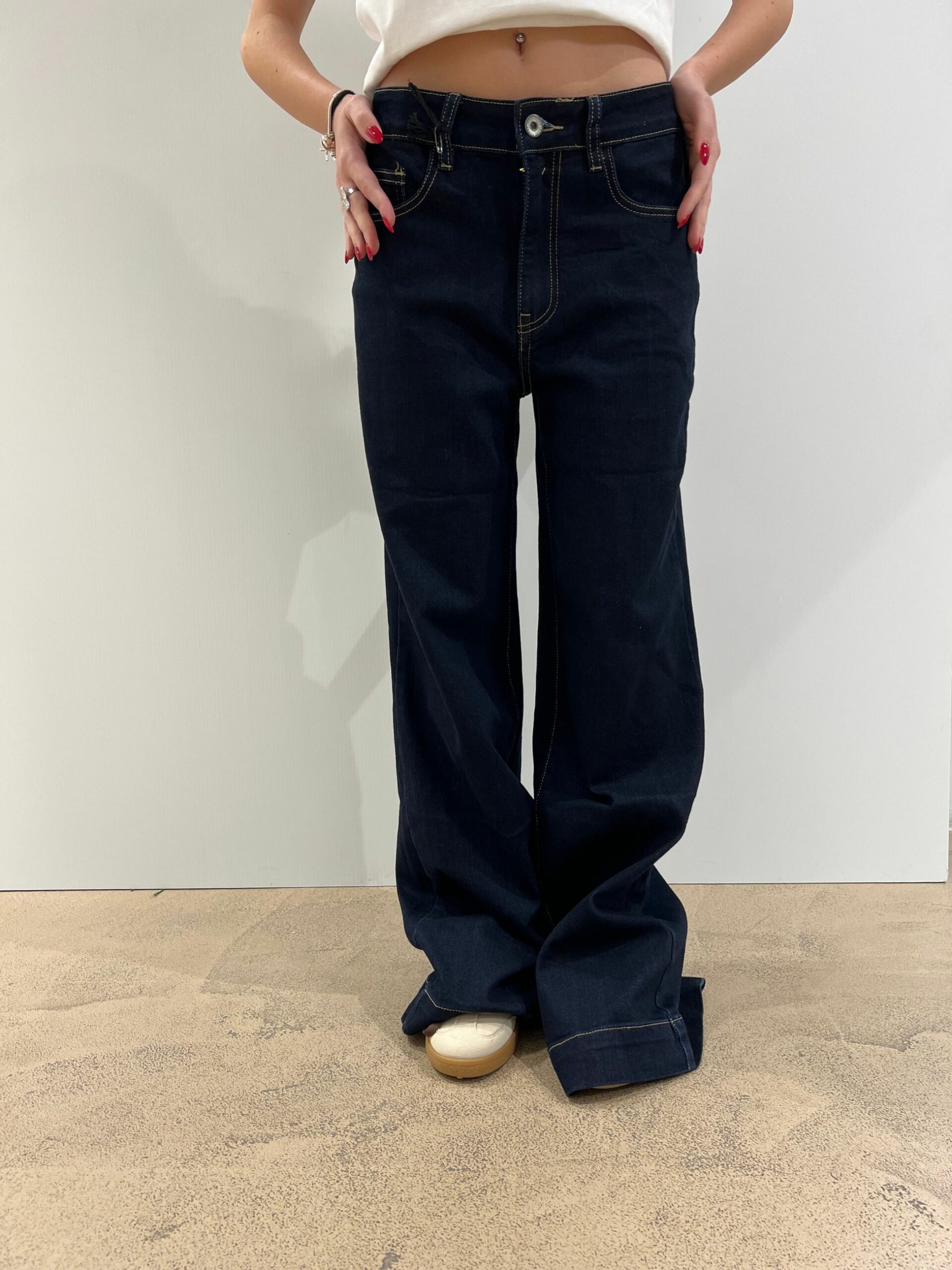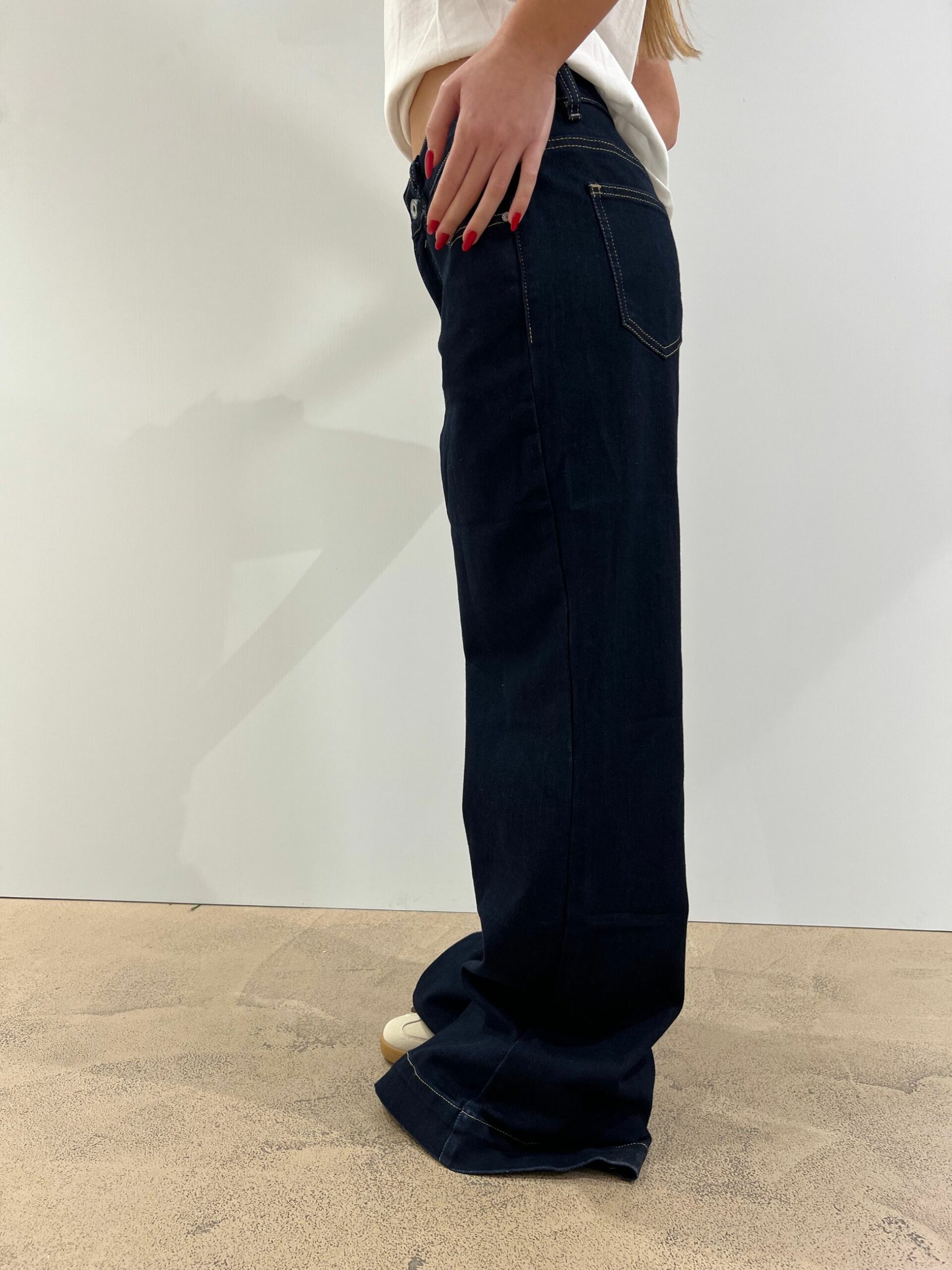 PANTALONE IN JEANS LAVAGGIO BLU SCURO A GAMBA DRITTA VITA ALTA