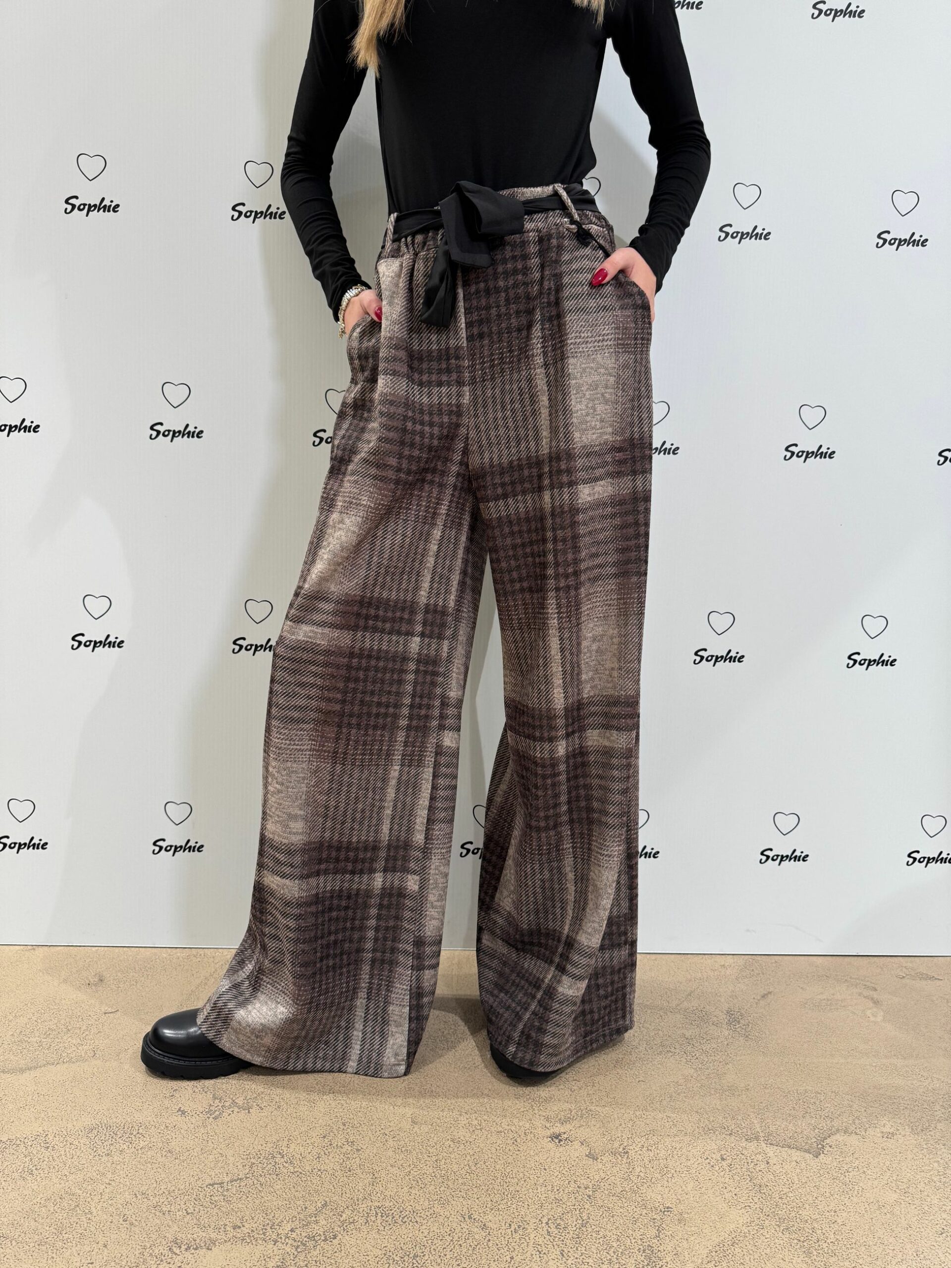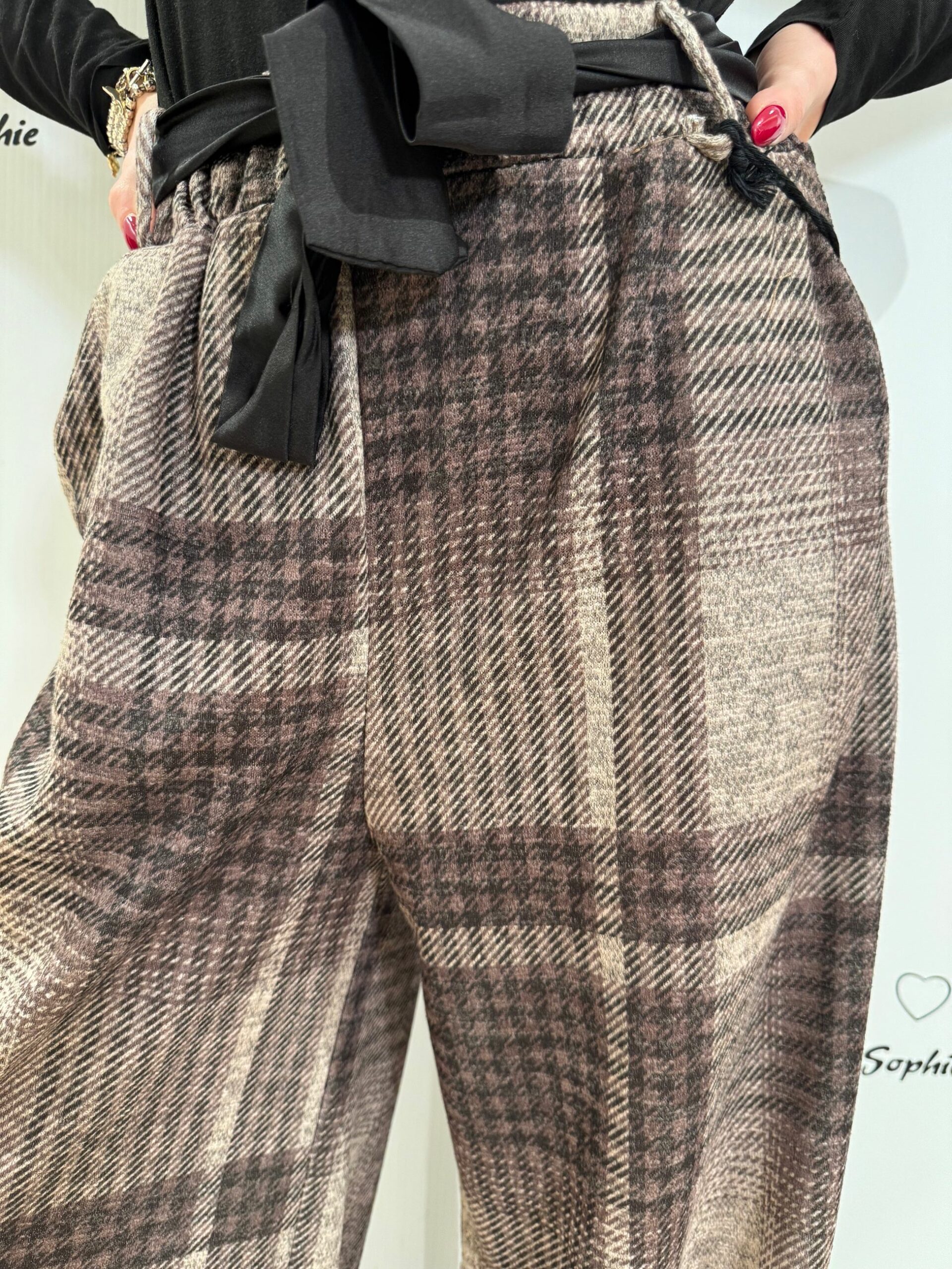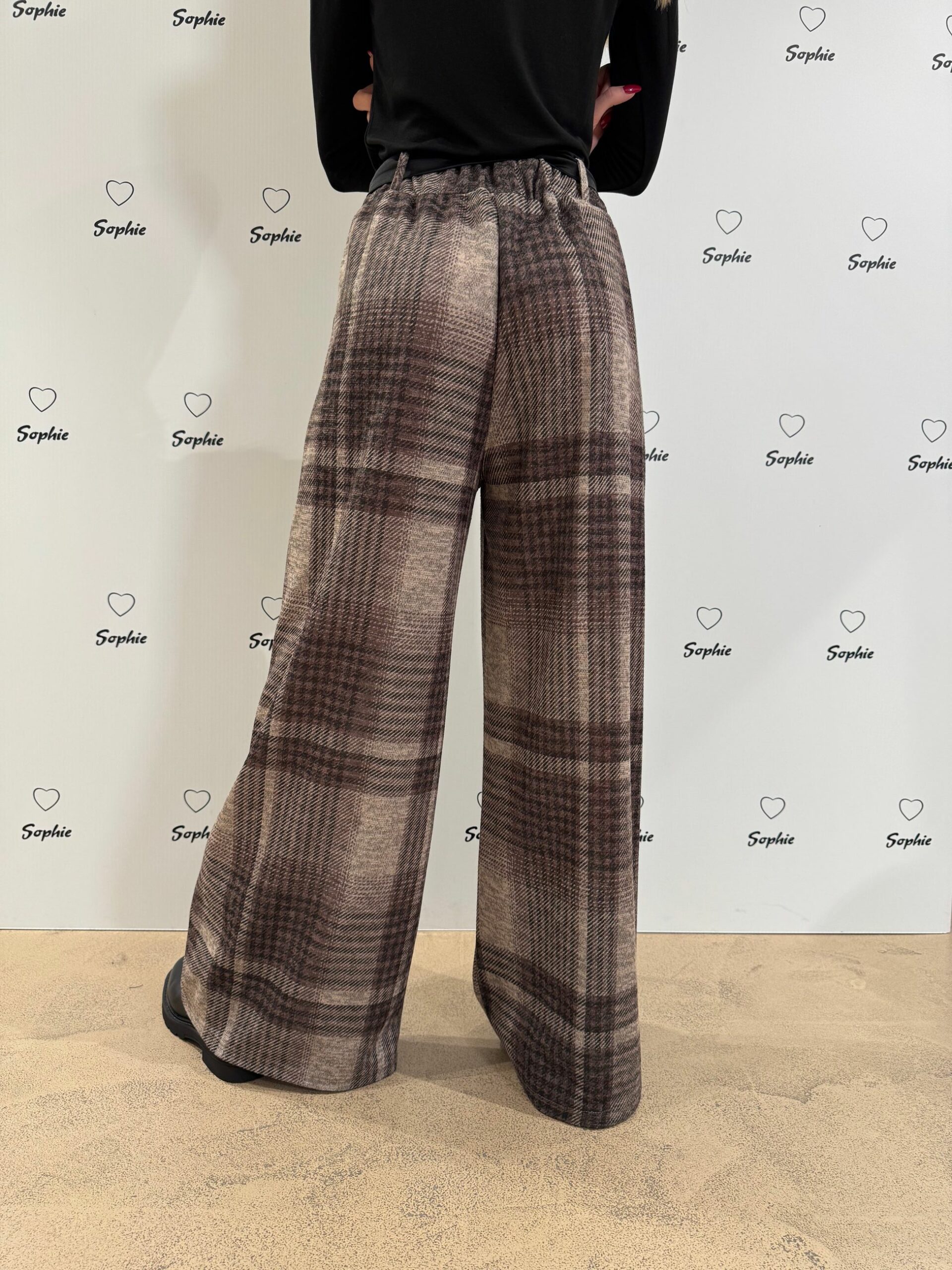 PANTALONE CON ELASTICO IN VITA A GAMBA LARGA DRITTA IN FANTASIA CHECK