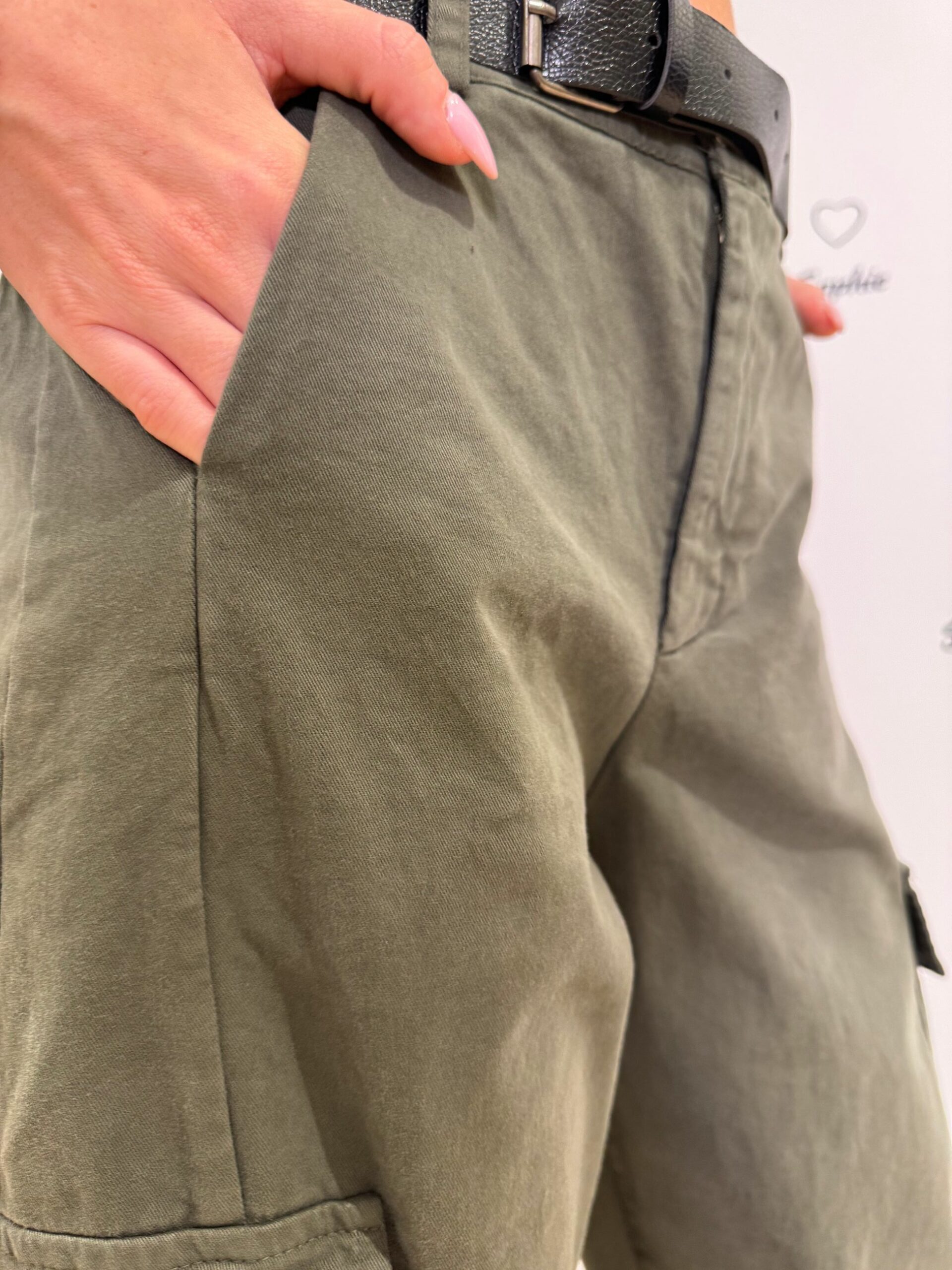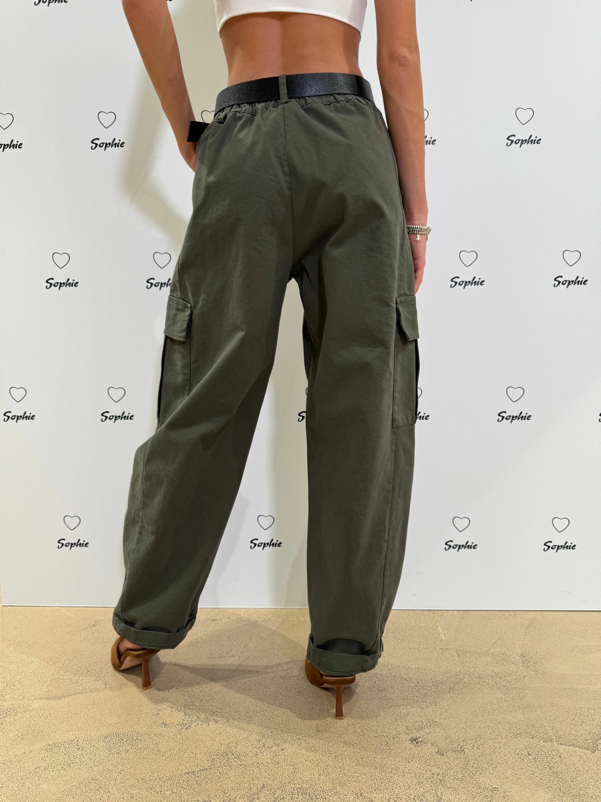 PANTALONE TIPO CARGO CON TASCHE LATERALI ED ELASTICO IN VITA NELLA PARTE POSTERIORE PER AGEVOLARE LA VESTIBILITA’