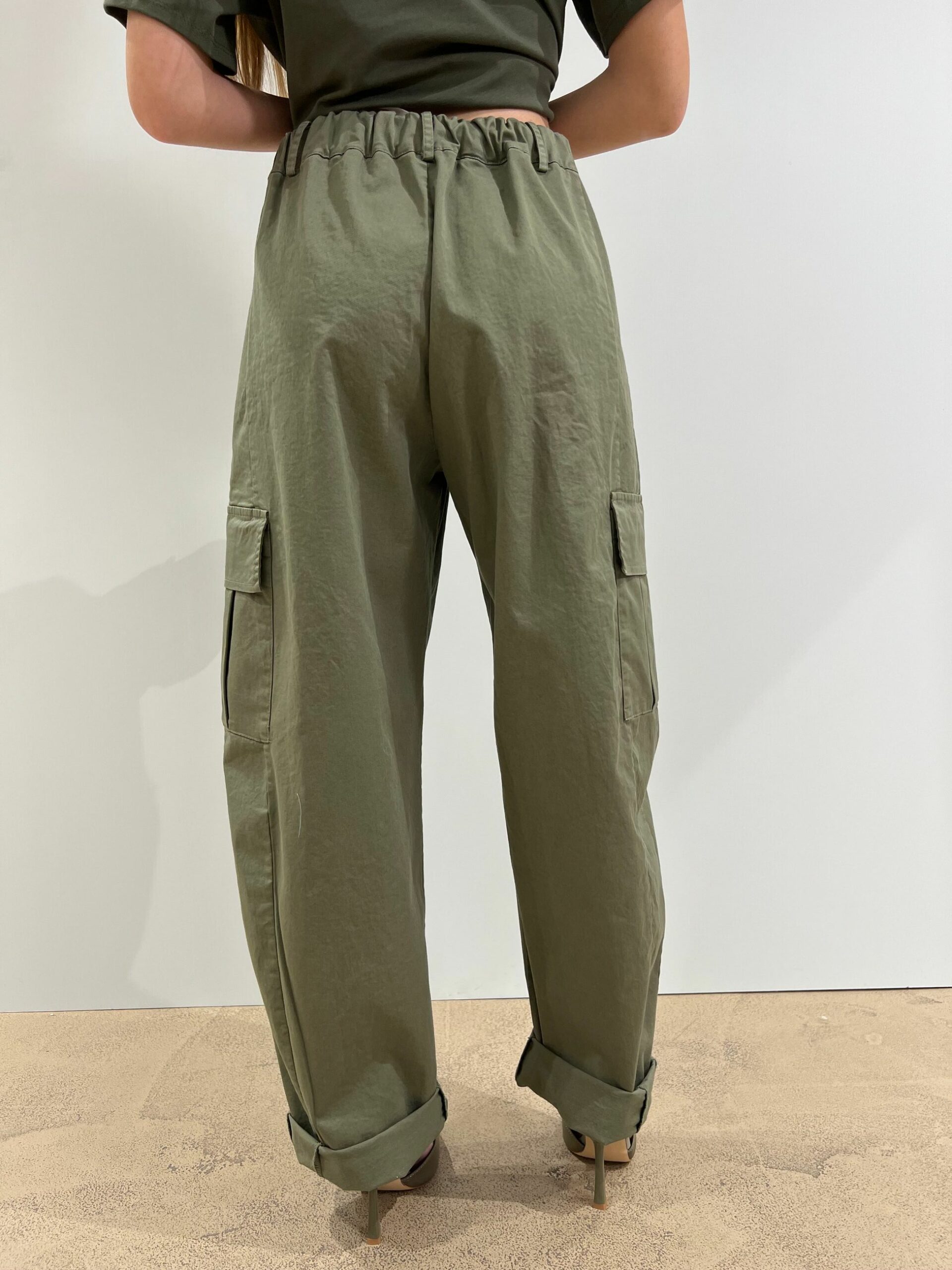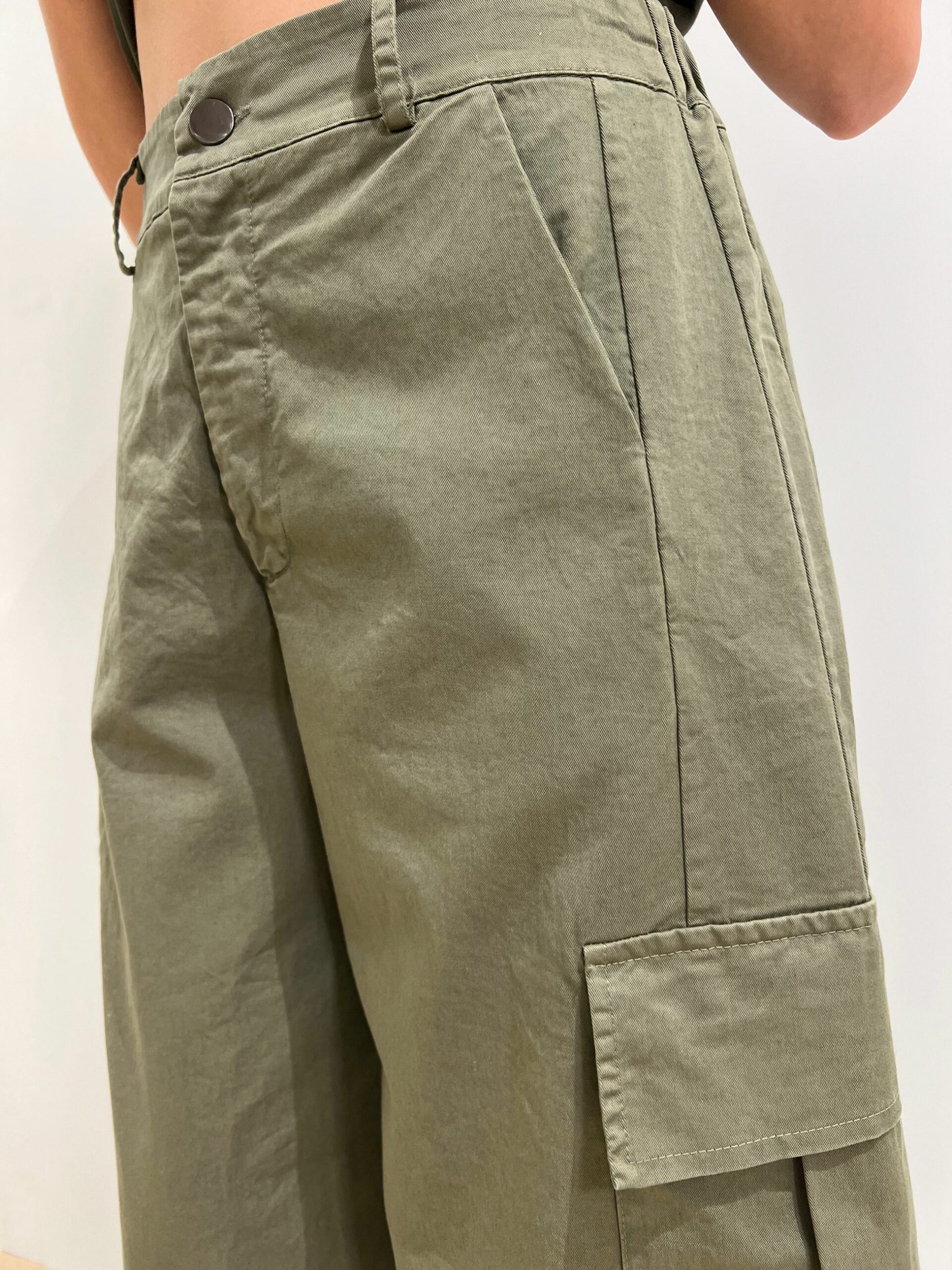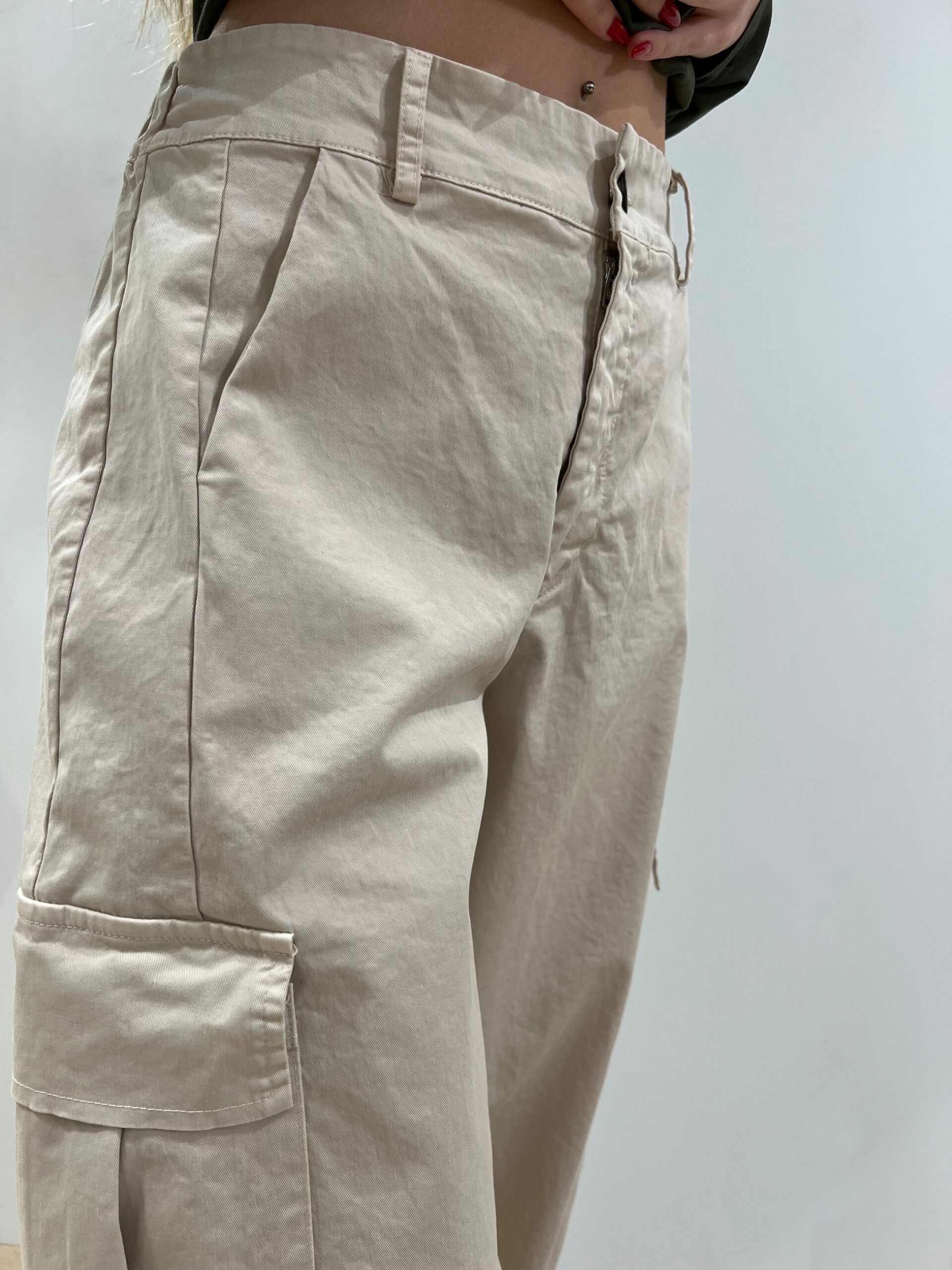 PANTALONE CON TASCONI LATERALI IN COTONE A GAMBA MORBIDA
