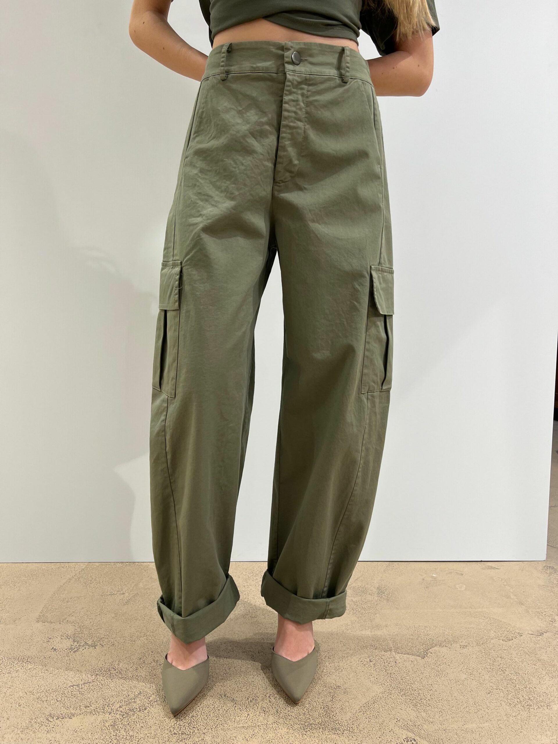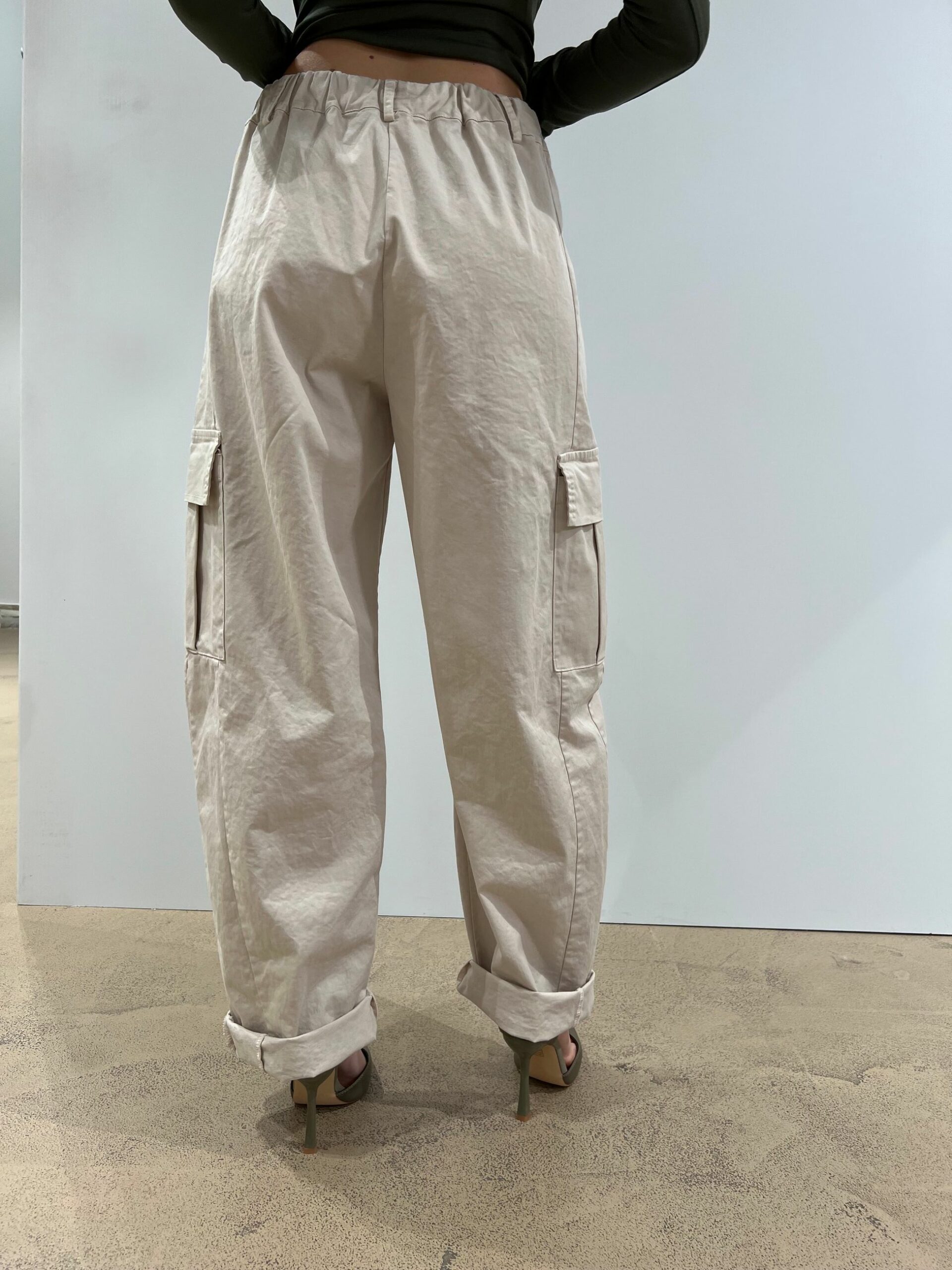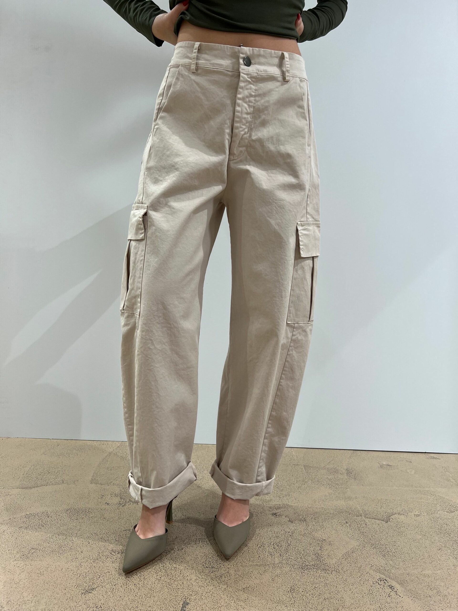 PANTALONE CON TASCONI LATERALI IN COTONE A GAMBA MORBIDA