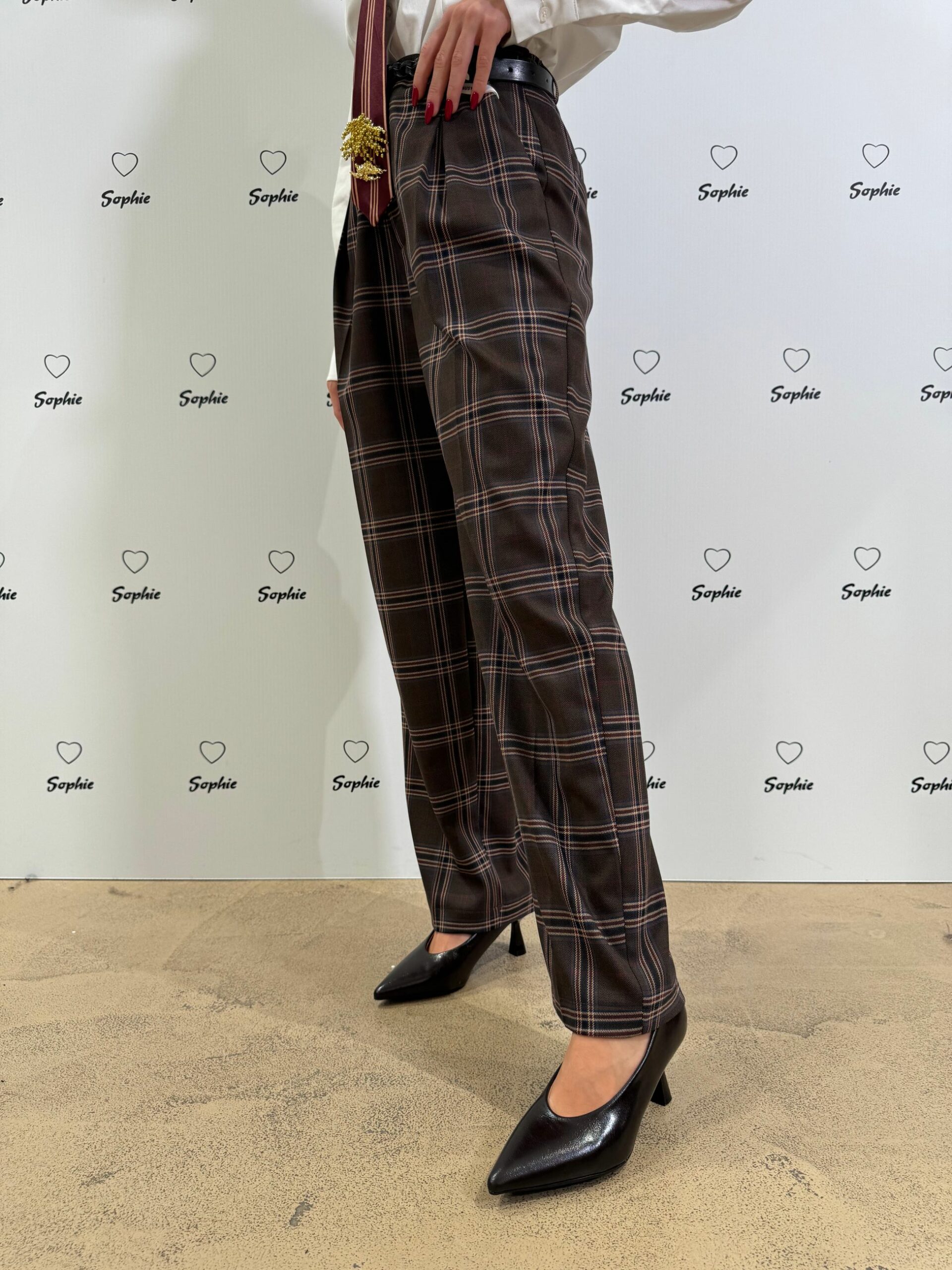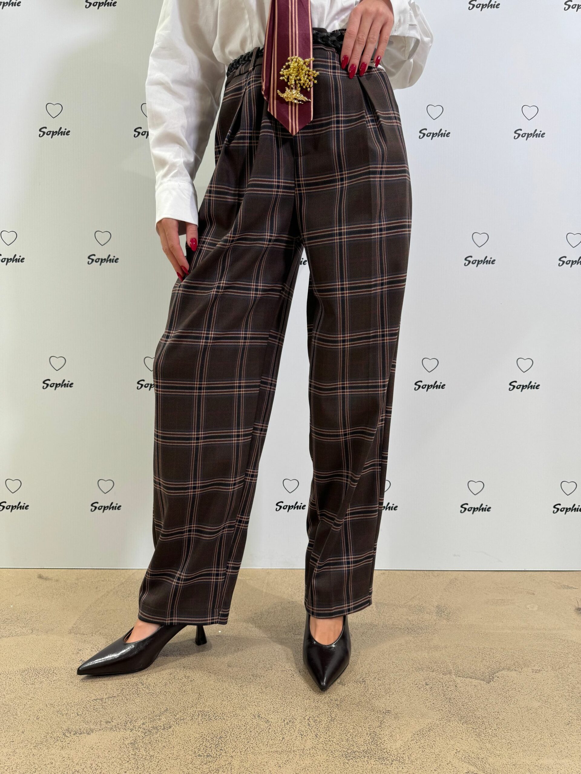 PANTALONE CON FANTASIA A QUADRI, PINCES SUL DAVANTI