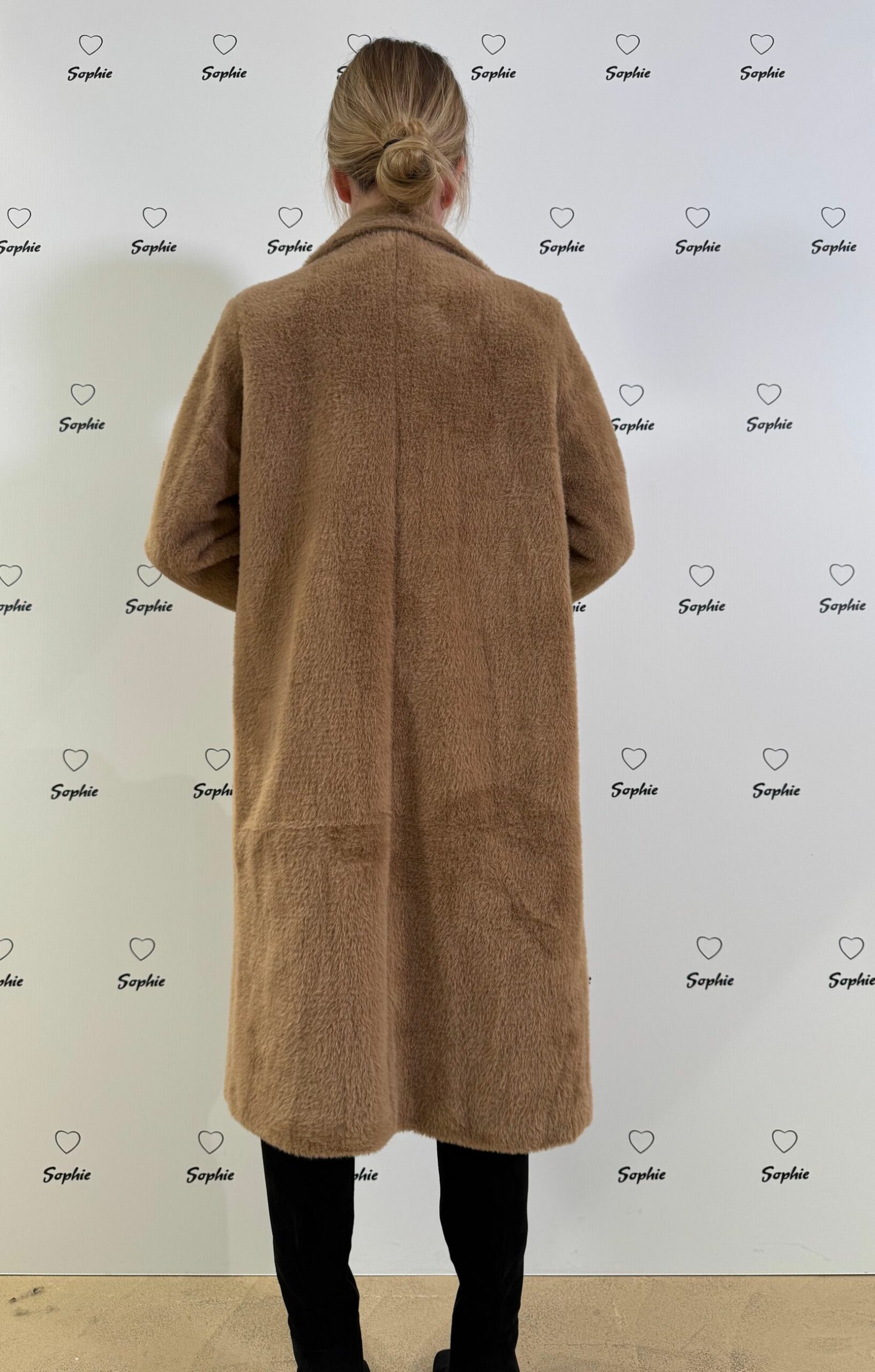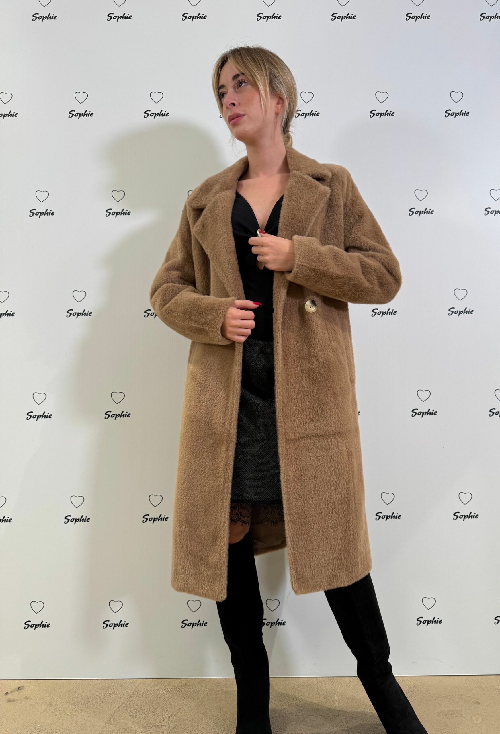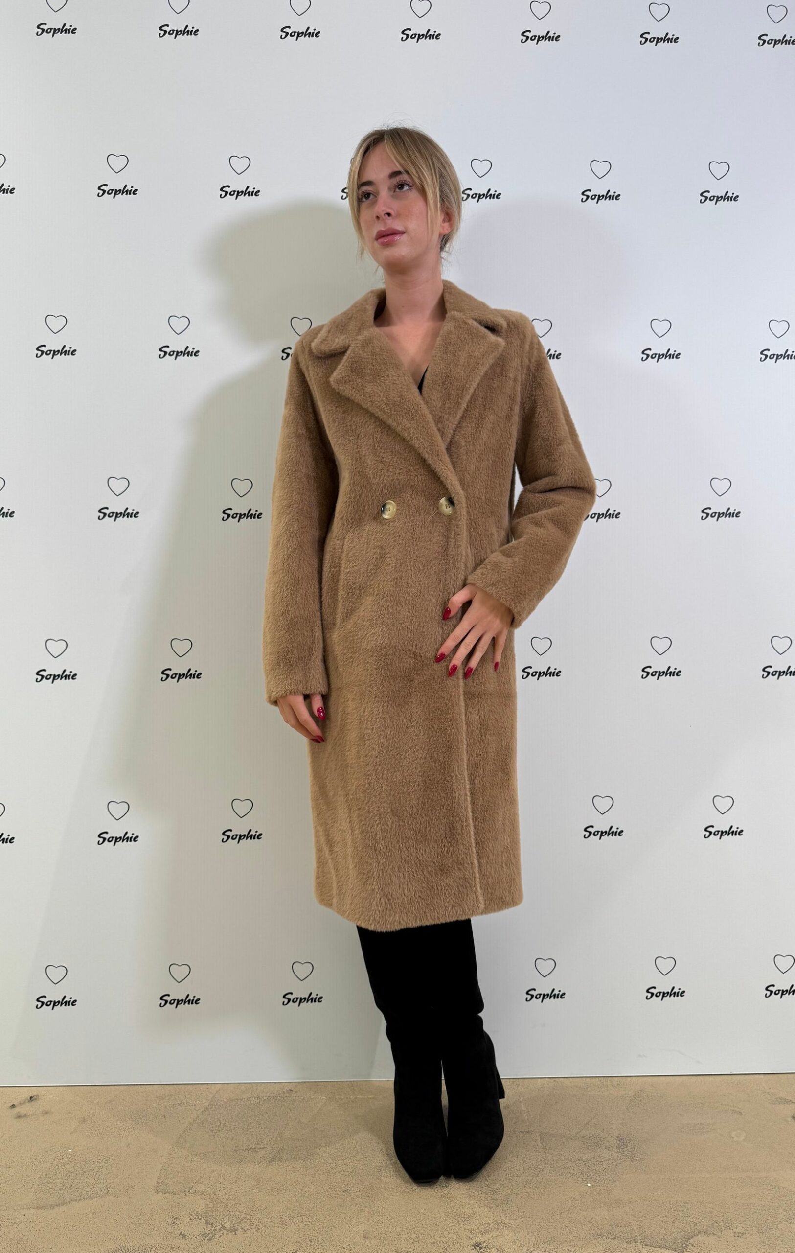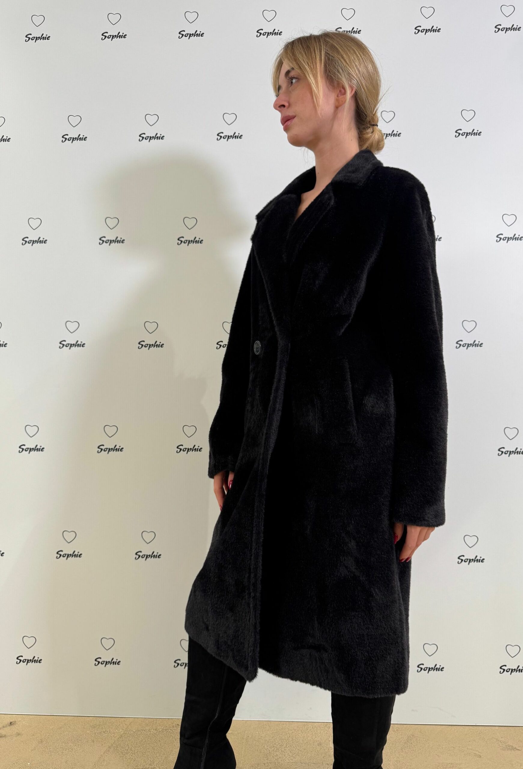 CAPPOTTO IN PELLICCETTA A PELO CORTO, FODERATO, DOPPIO PETTO, TASCHE FRONTALI