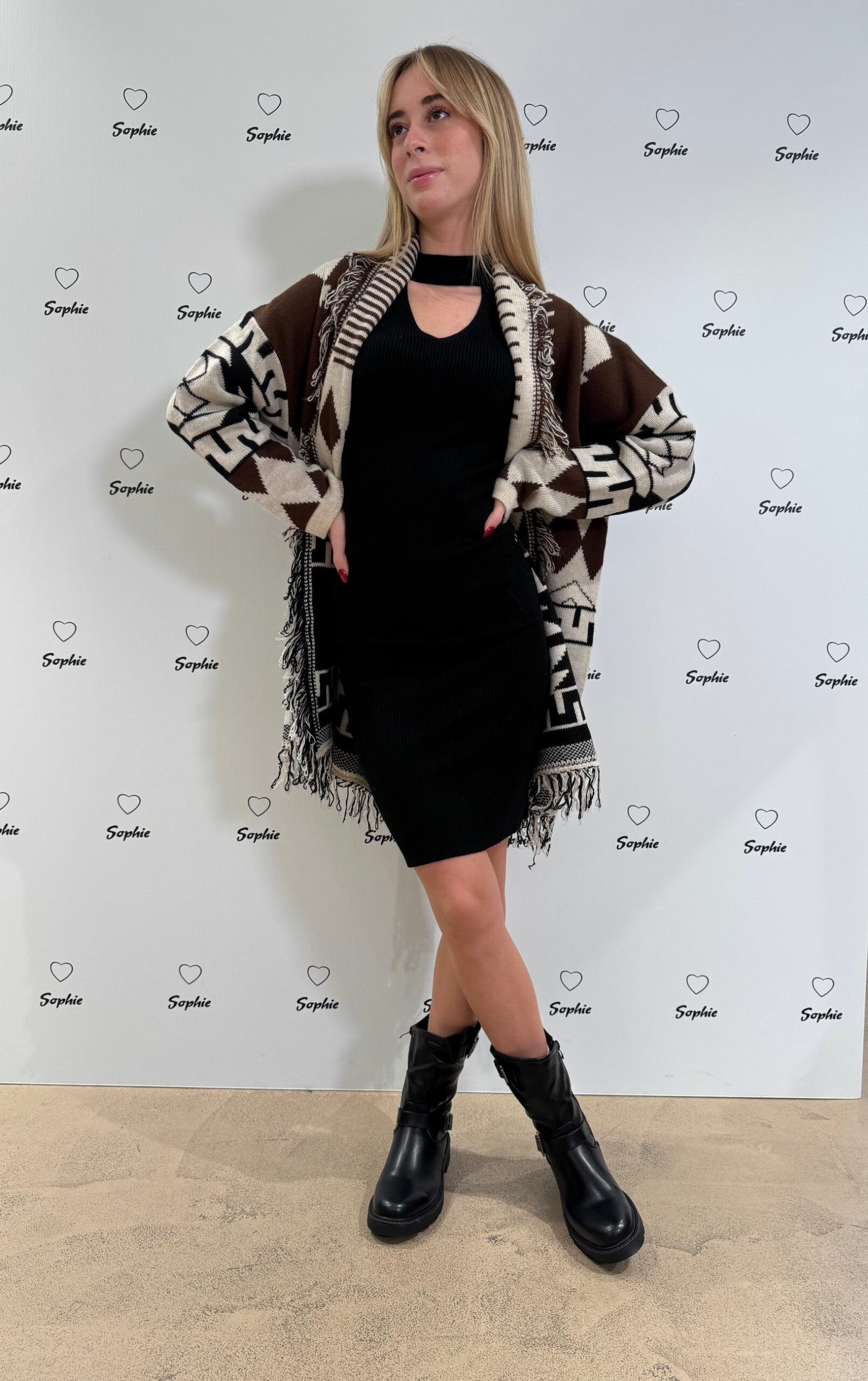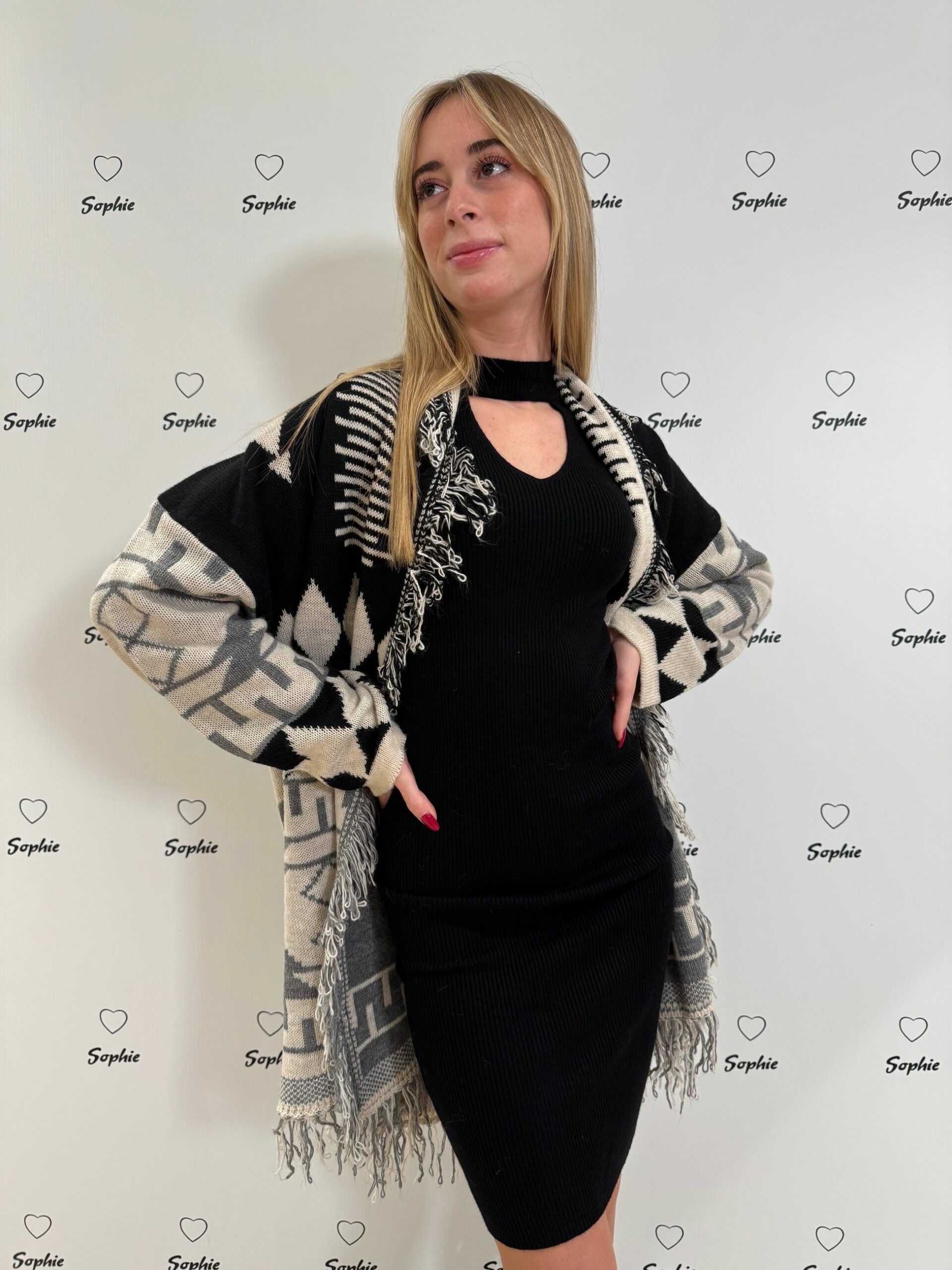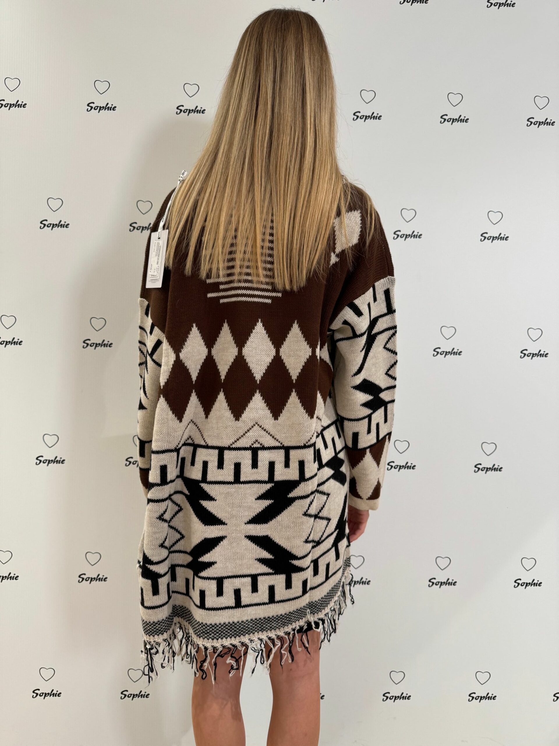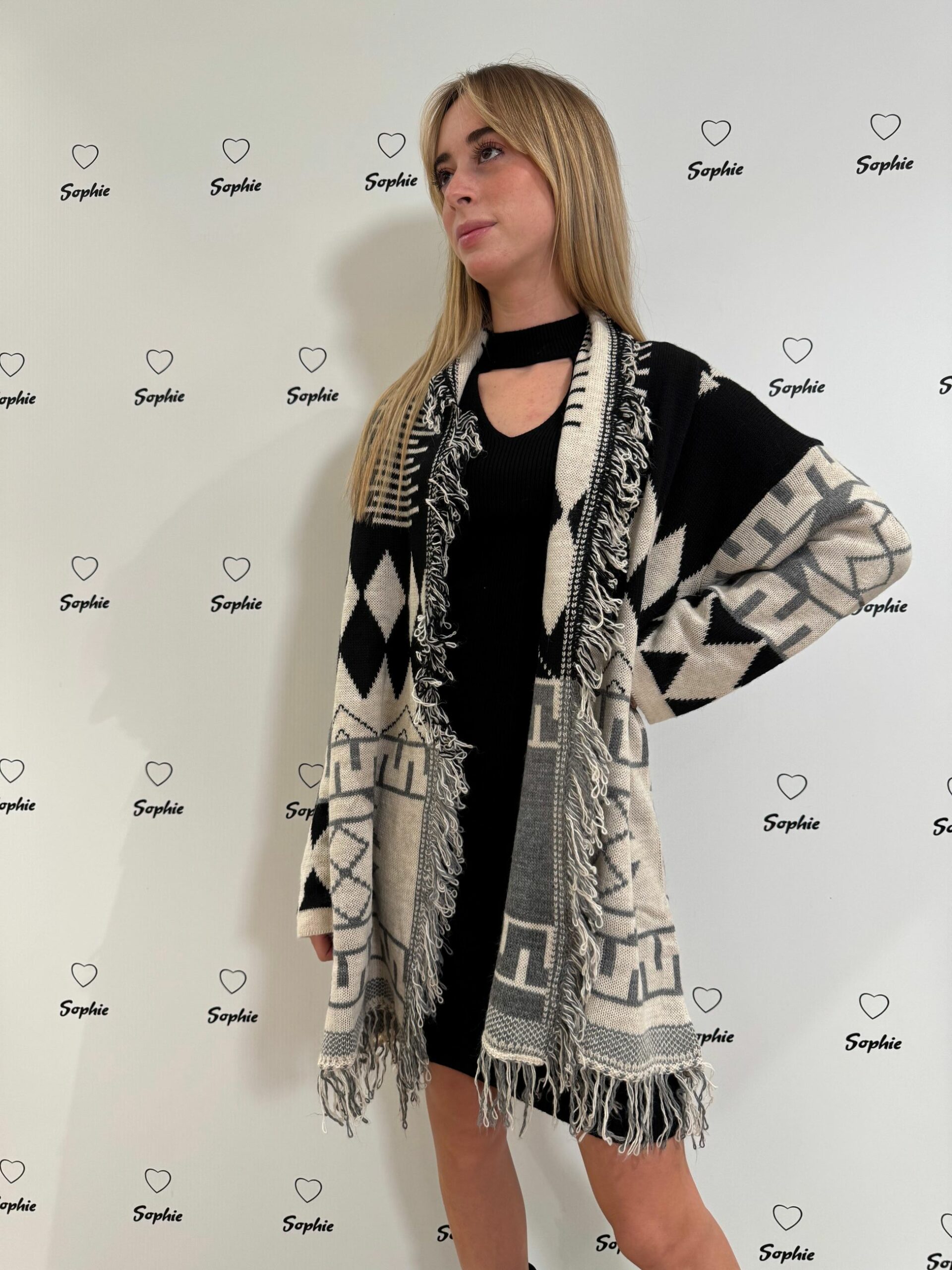 CARDIGAN IN FANTASIA BICOLORE CON FRANGE SUL BORDO