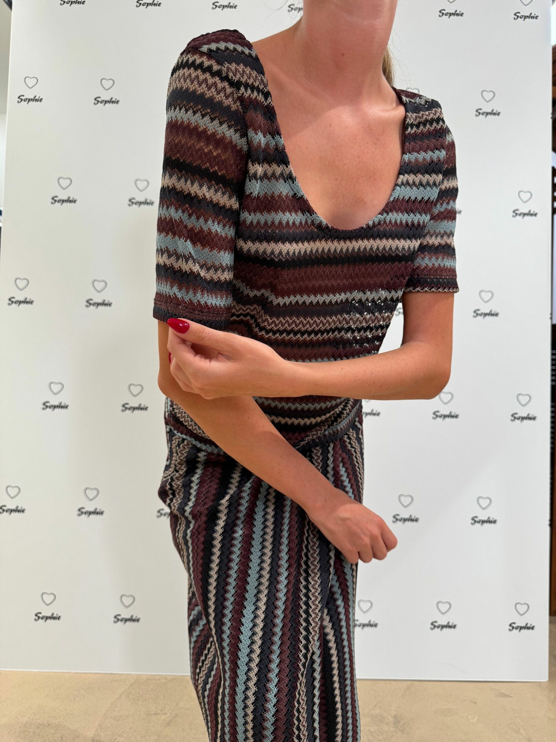 MAGLIA MANICA CORTA CON FANTASIA TIPO MISSONI SCOLLO MADONNA