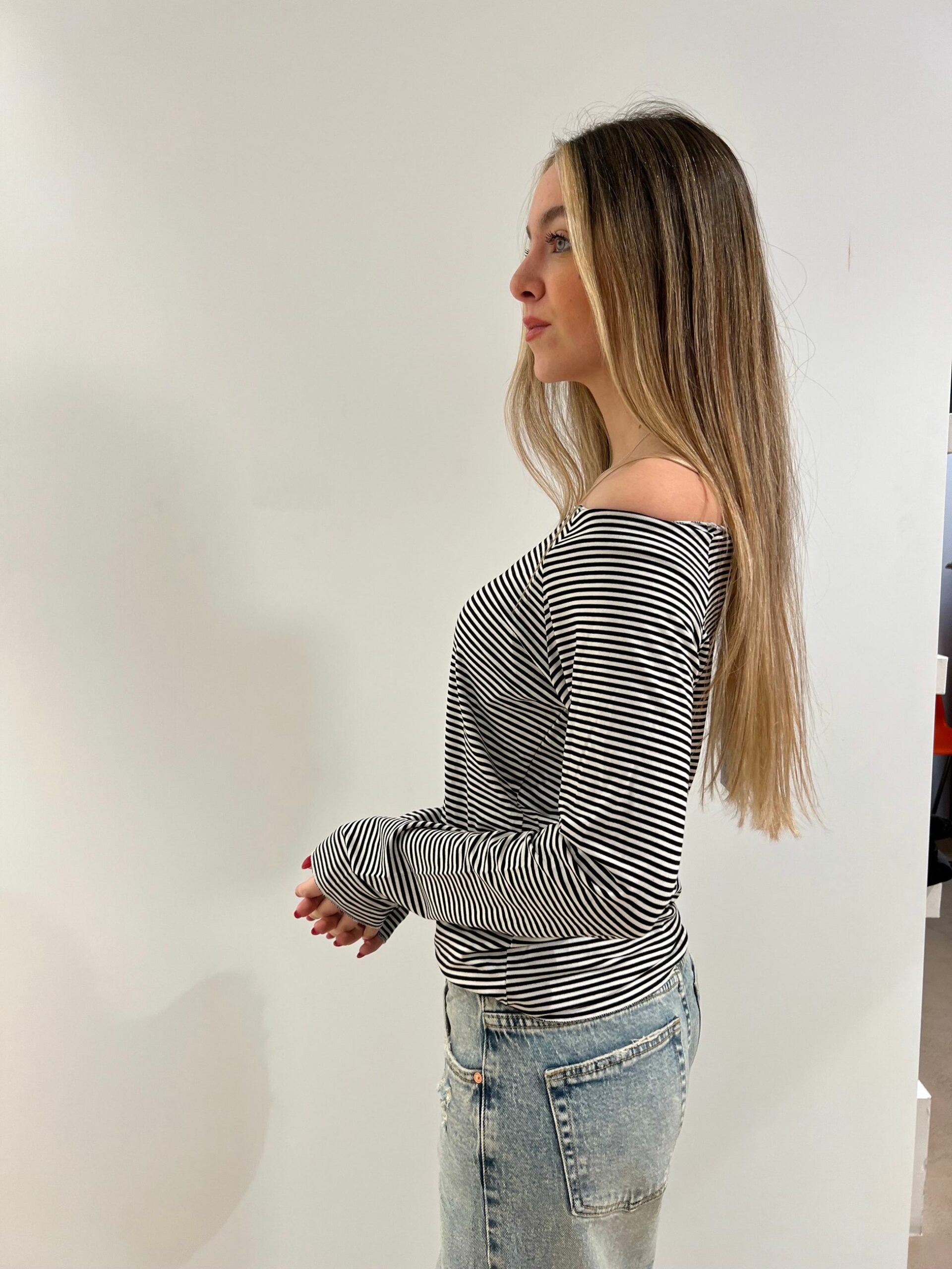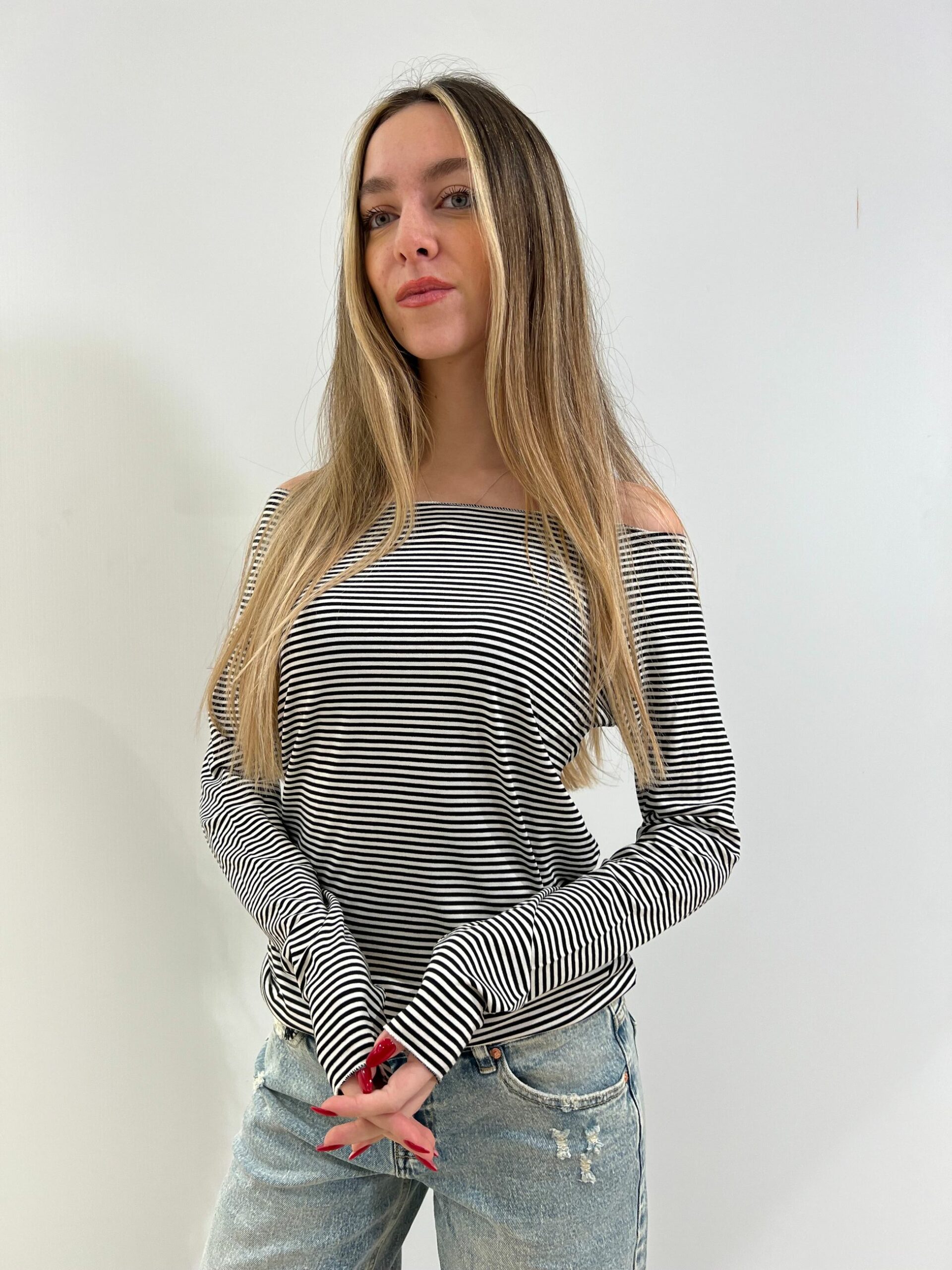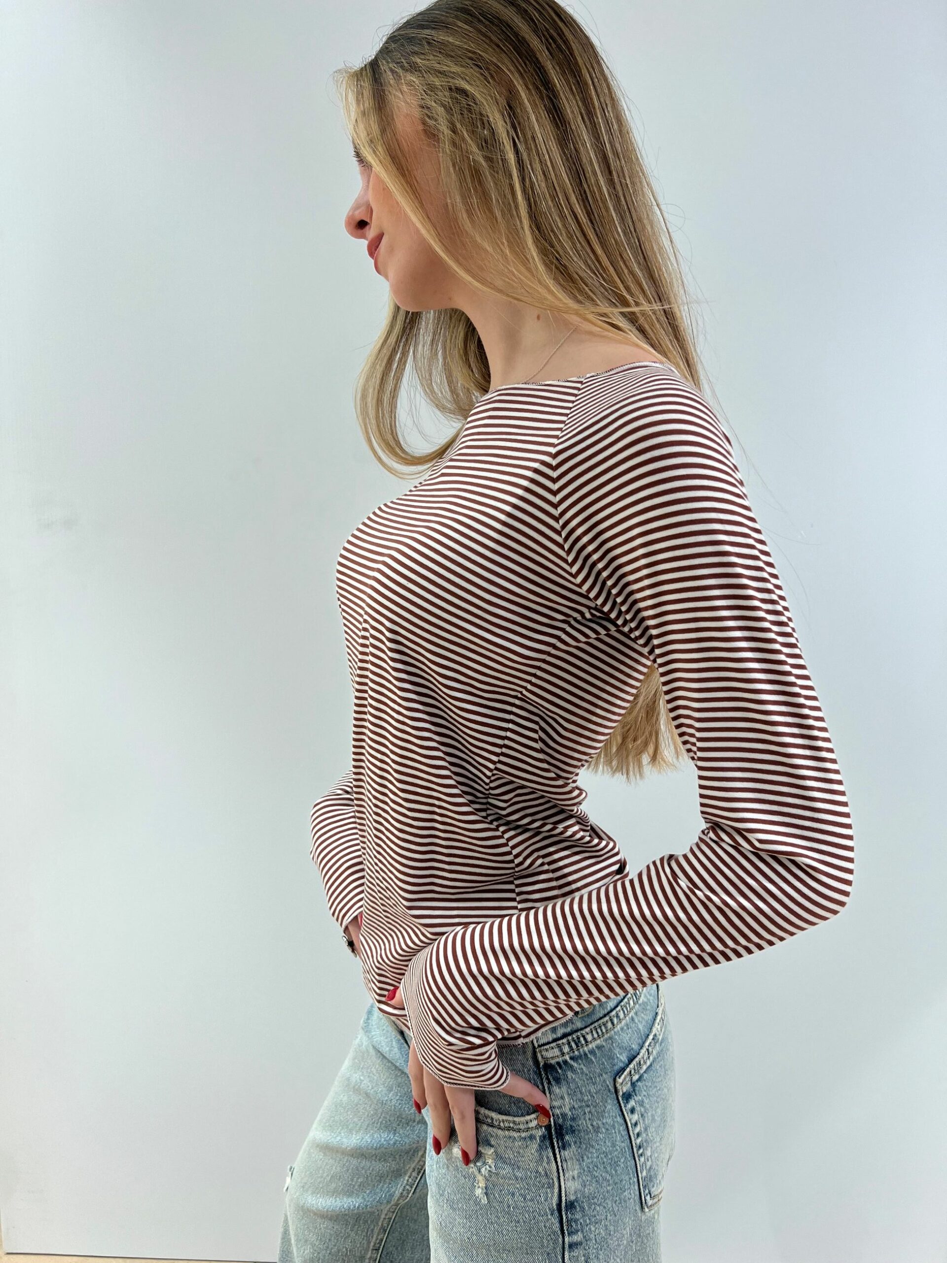T-SHIRT A RIGHINE SOTTILI A MANICA LUNGA VESTIBILITA’ SLIM