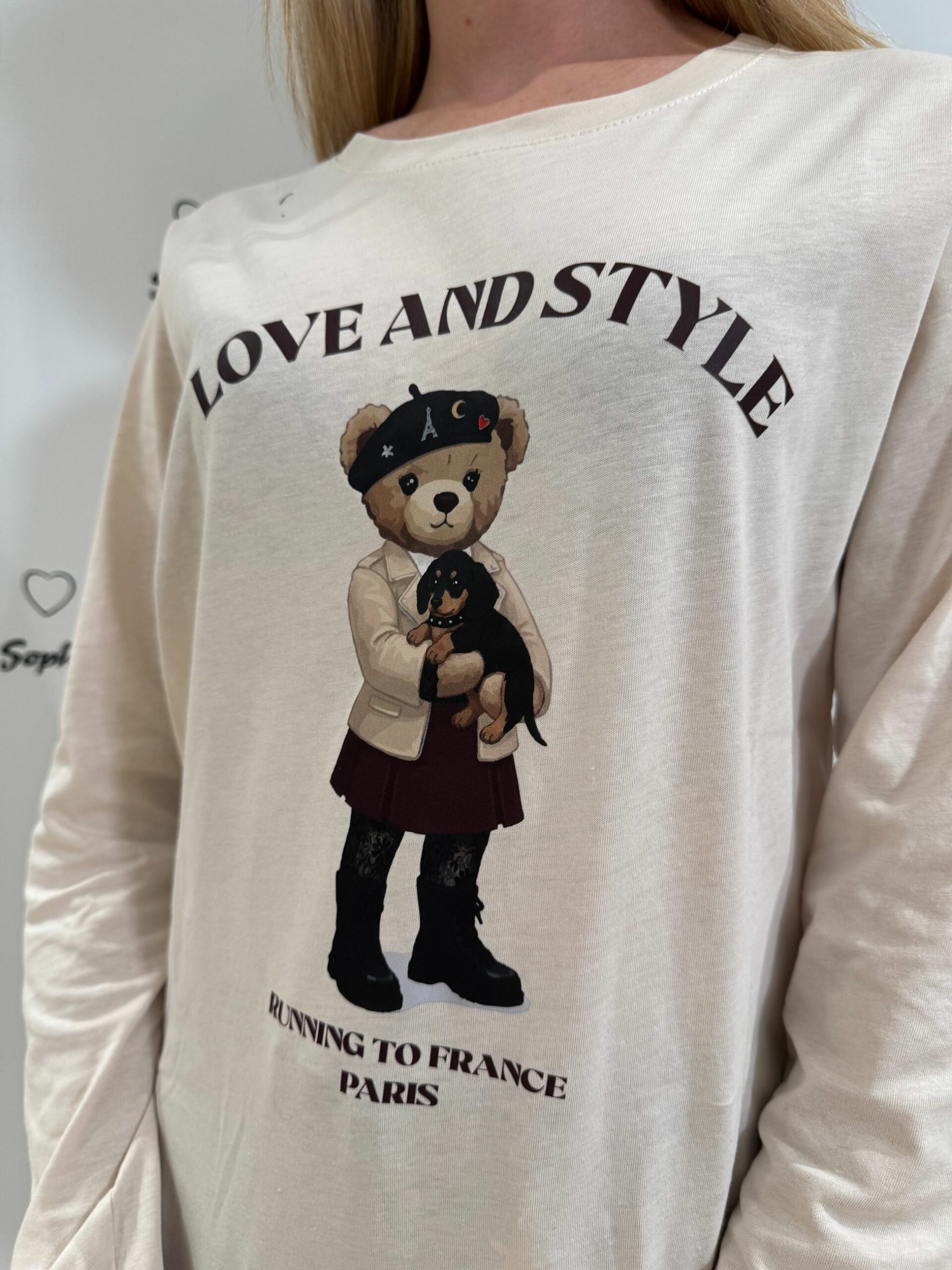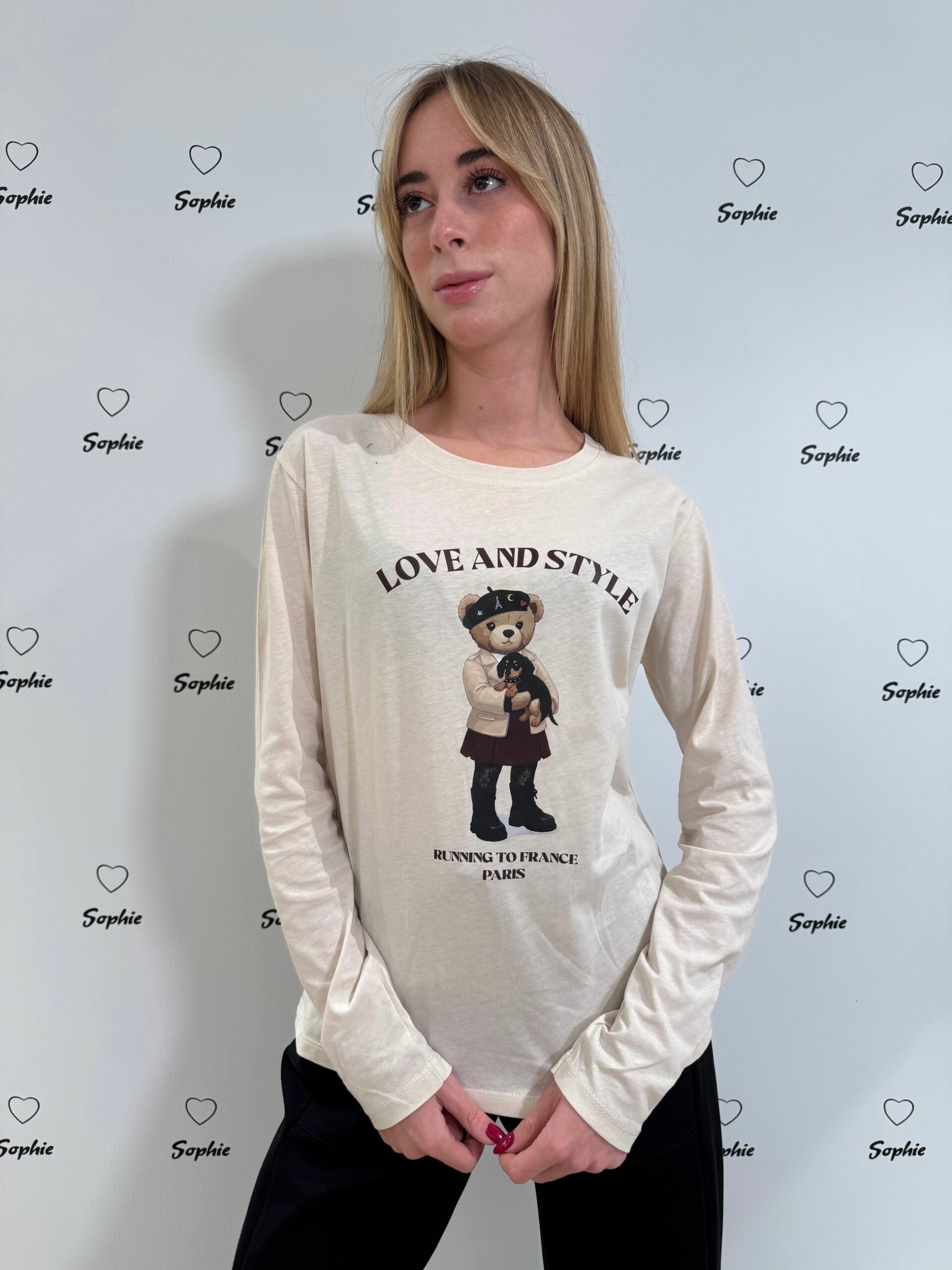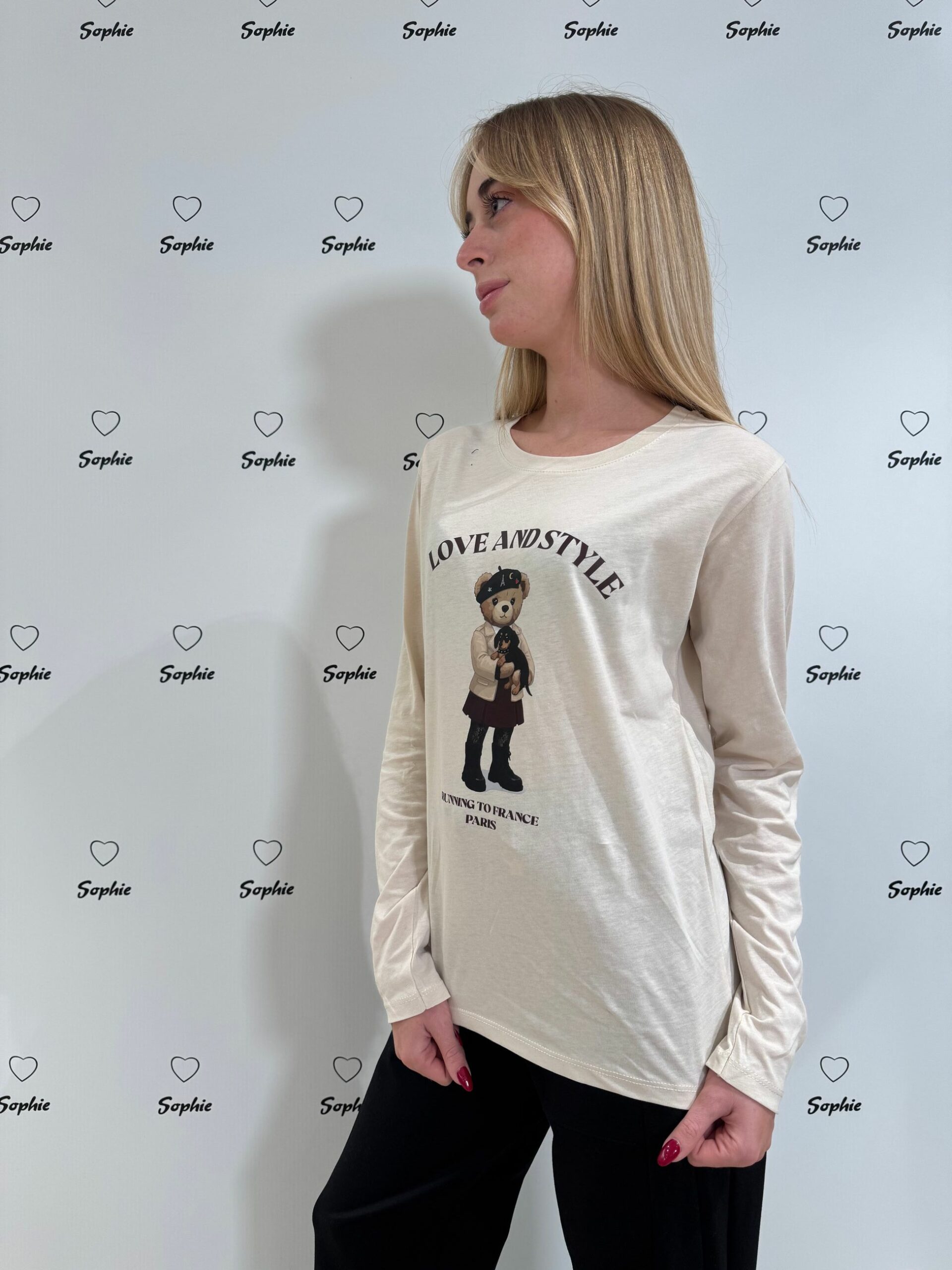 T-SHIRT IN COTONE MANICA LUNGA CON STAMPA ORSETTO