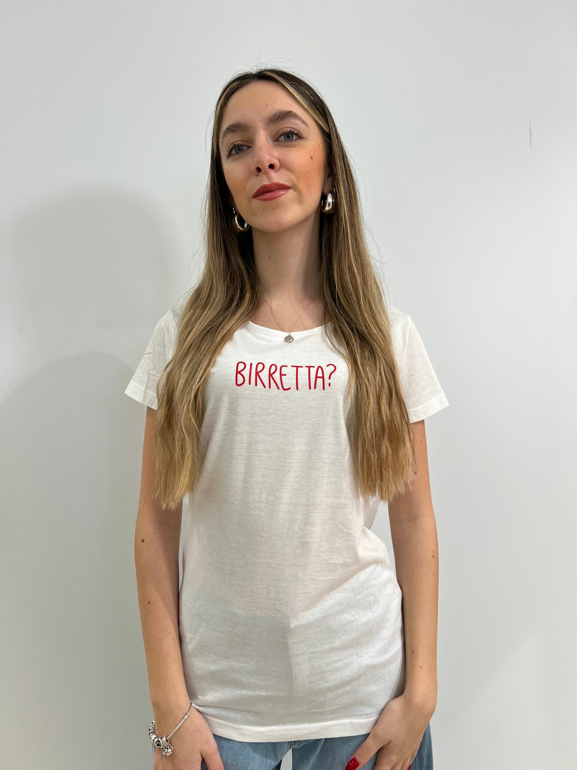 T-SHIRT SFIANCATA A VESTIBILITA’ SLIM CON STAMPA “BIRRETTA?”