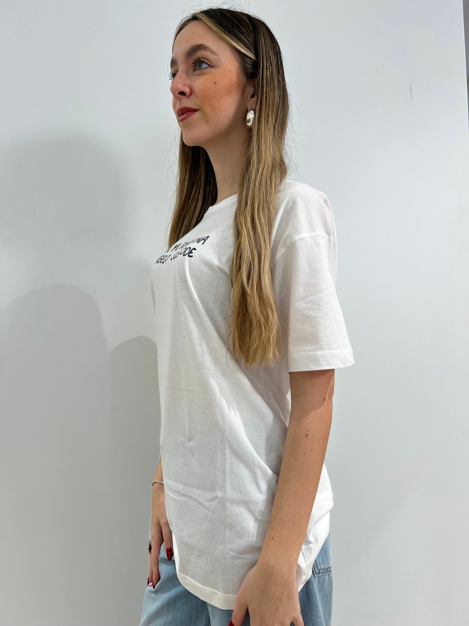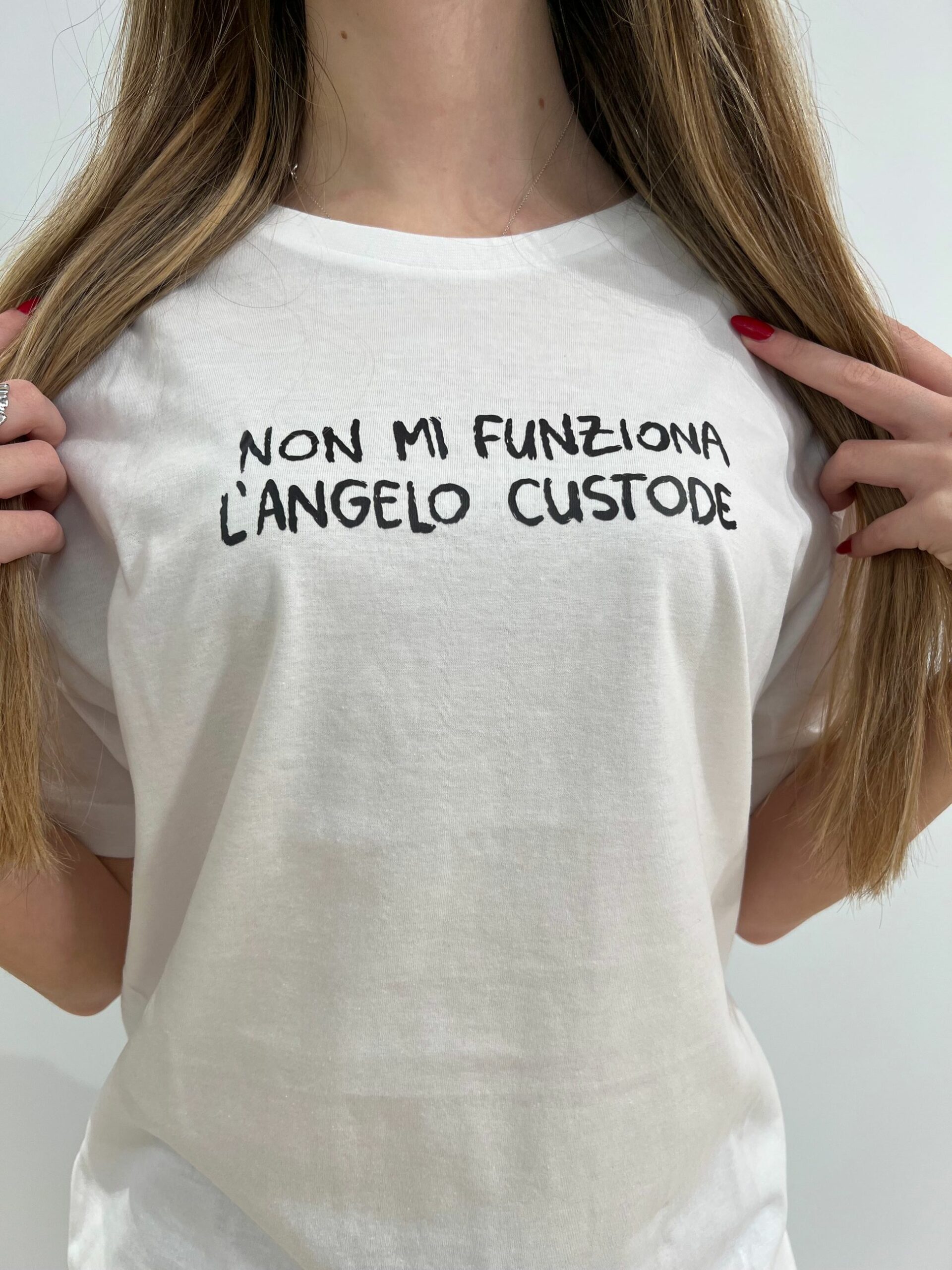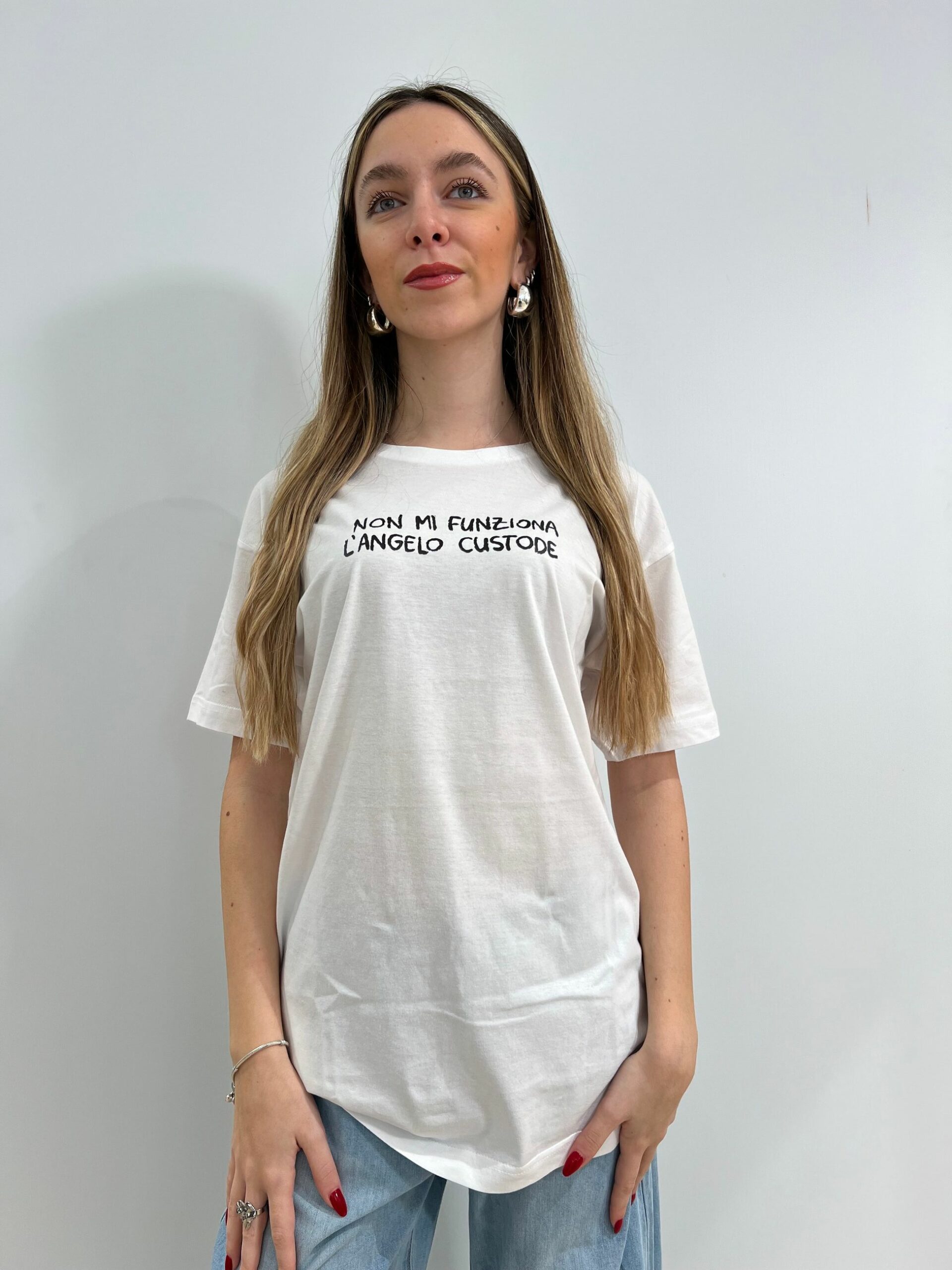 T-SHIRT SFIANCATA A VESTIBILITA’ SLIM CON STAMPA “NON MI FUNZIONA…”
